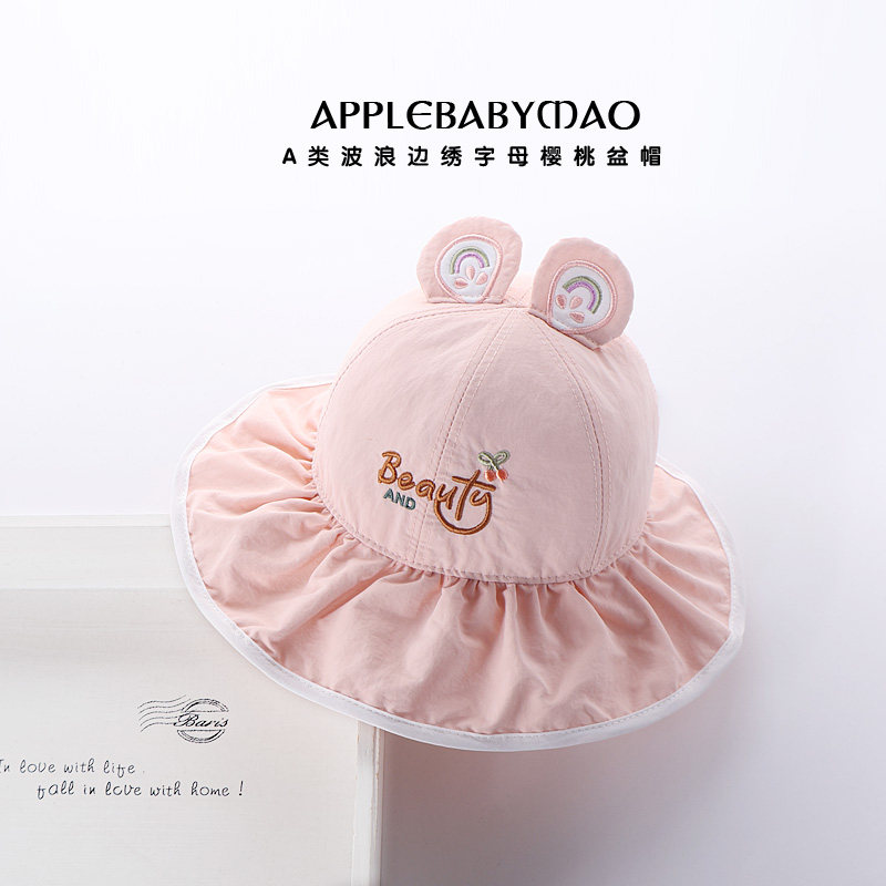 宝宝帽子春天秋季儿童防晒帽女童渔夫帽小孩外出大帽檐可调太阳帽