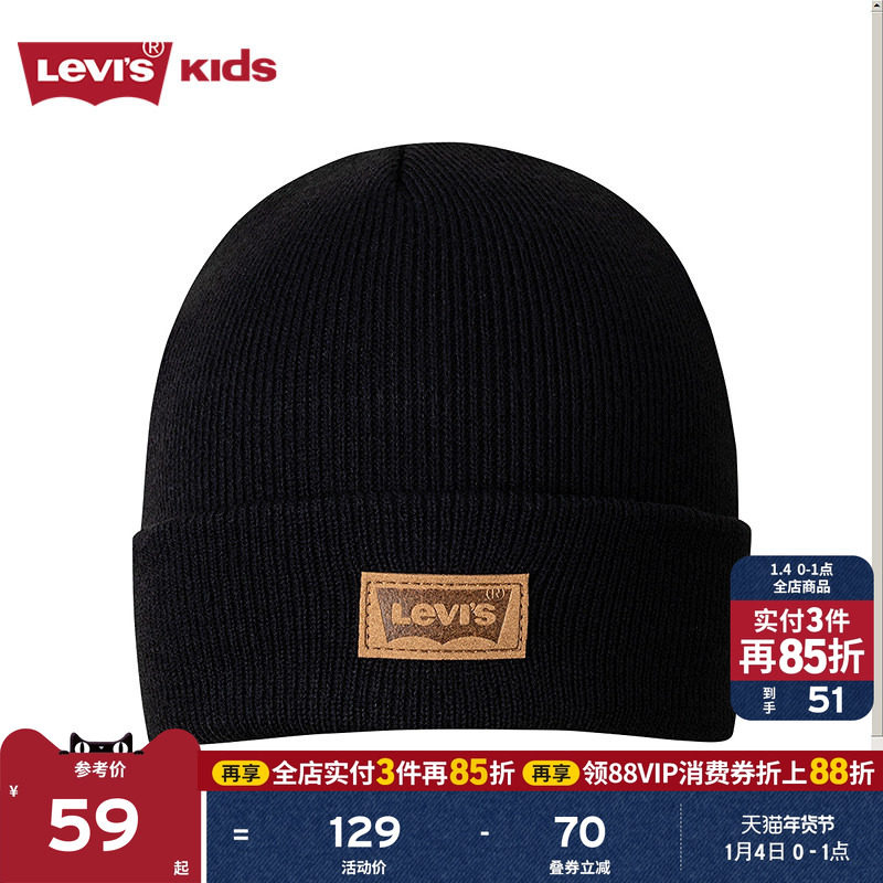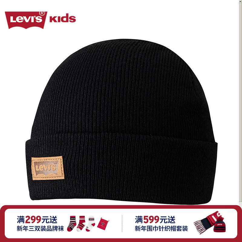 Levi's李维斯儿童帽子男童2025冬季新款保暖套头毛线男女童针织帽