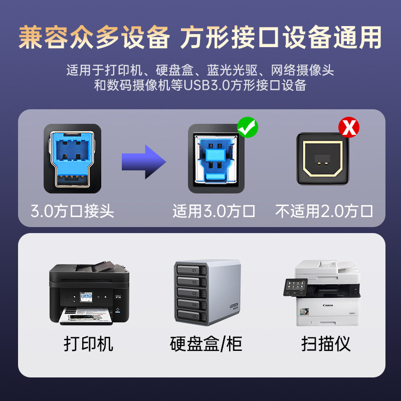 斯格光纤USB3.2 A转B数据线10Gbps打印机延长连接线加长方口直播视频会议摄像头电脑硬盘盒显示器高速传输线