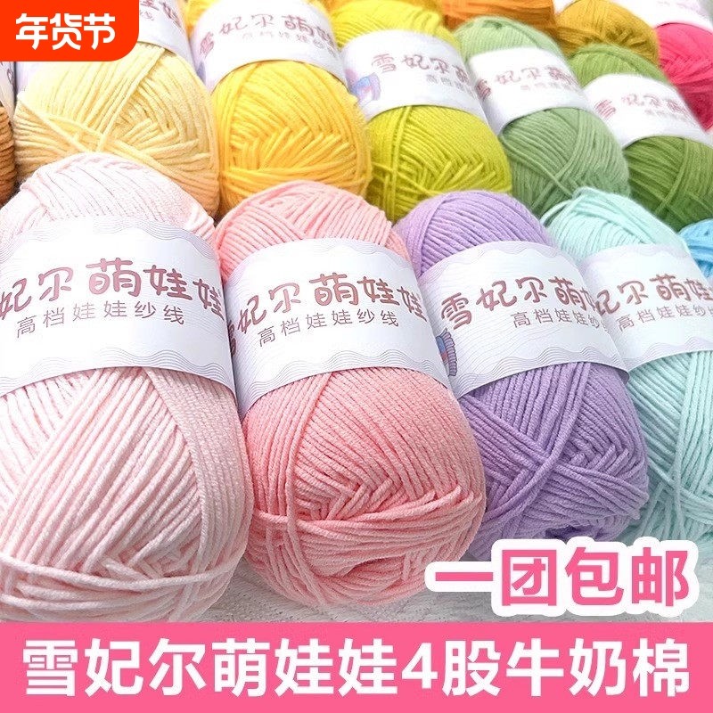 4股萌娃娃毛线手工编织四股牛奶棉钩针精梳棉DIY毛线团