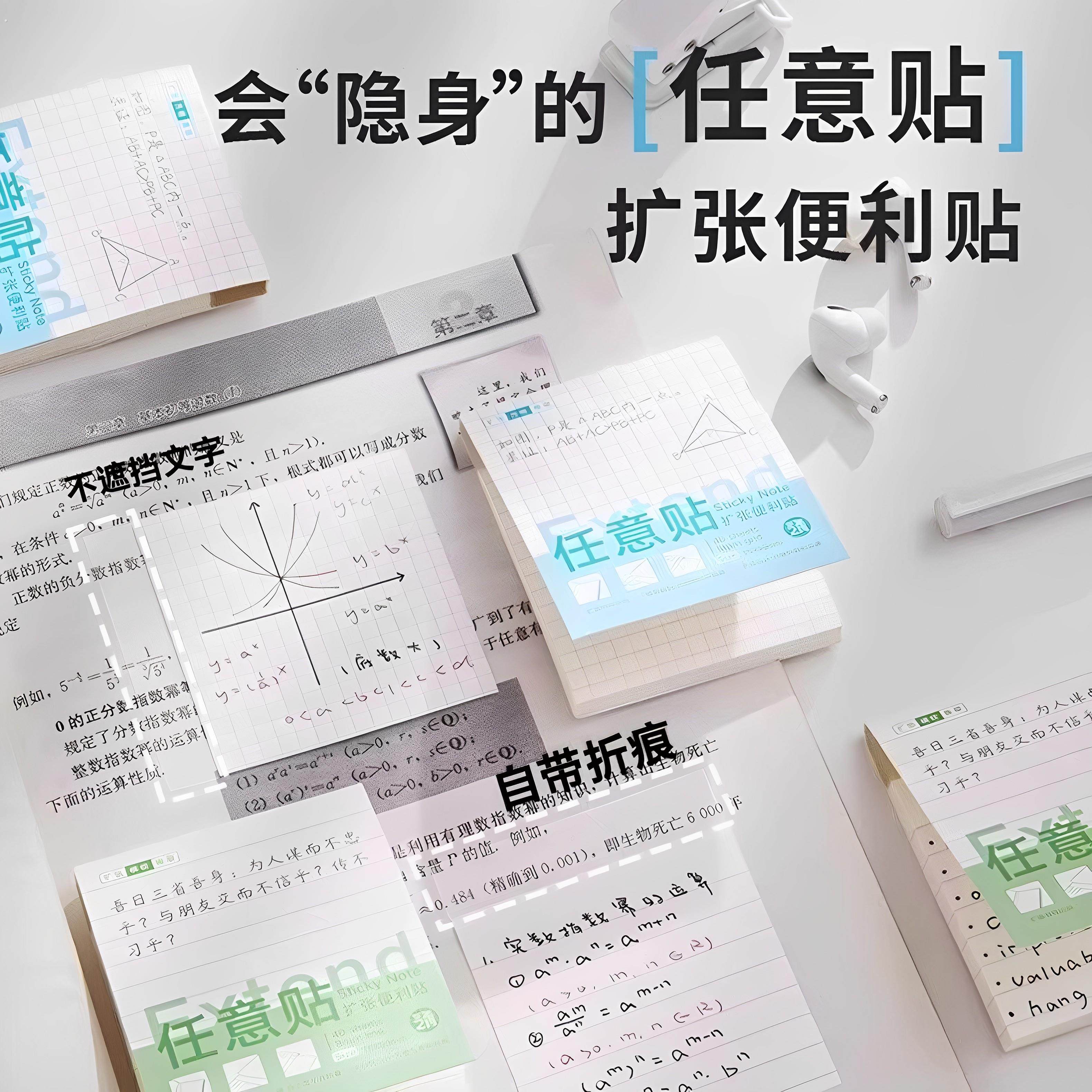 任意扩张贴便利贴不遮挡文字透明可折叠考研小学生用可撕有粘性便签贴纸初高中生记笔记贴订正错题办公便利贴