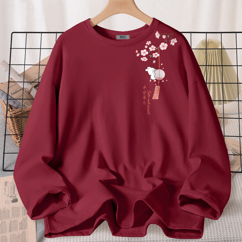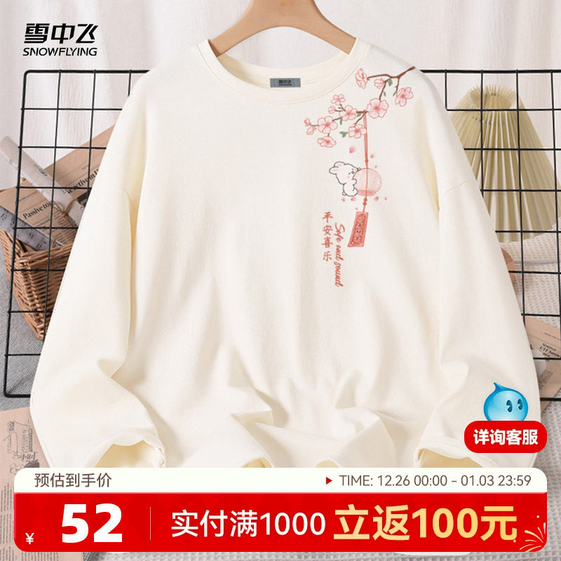 雪中飞纯棉长袖T恤女2025新款秋季新中式宽松舒适圆领内搭上衣PC