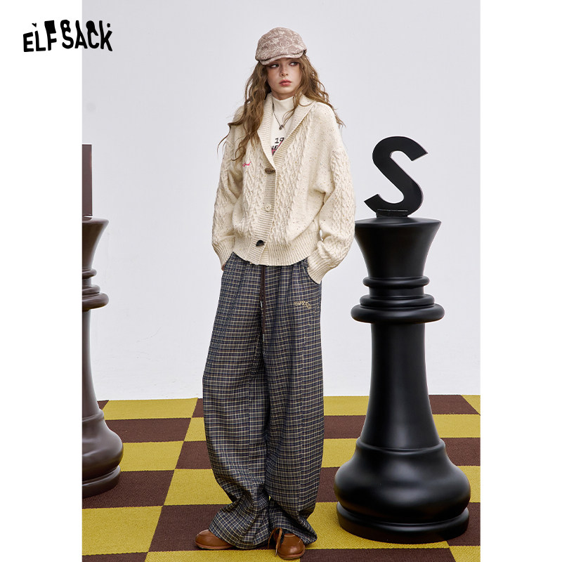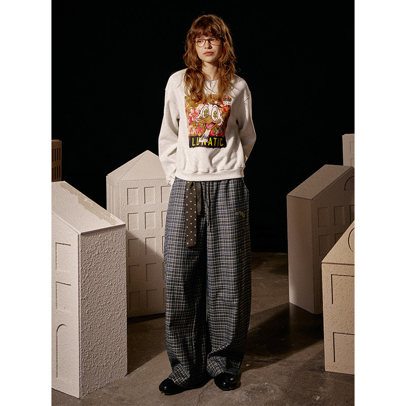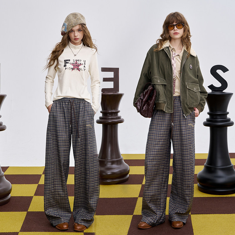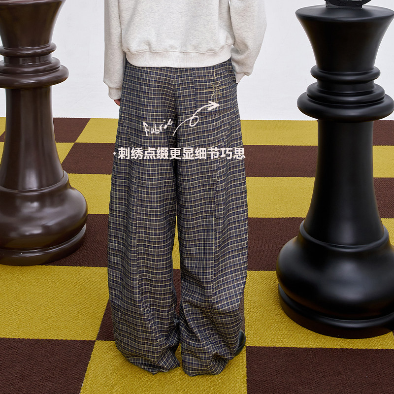 妖精的口袋复古格子休闲阔腿裤女2025秋冬新款宽松慵懒风镰刀裤子