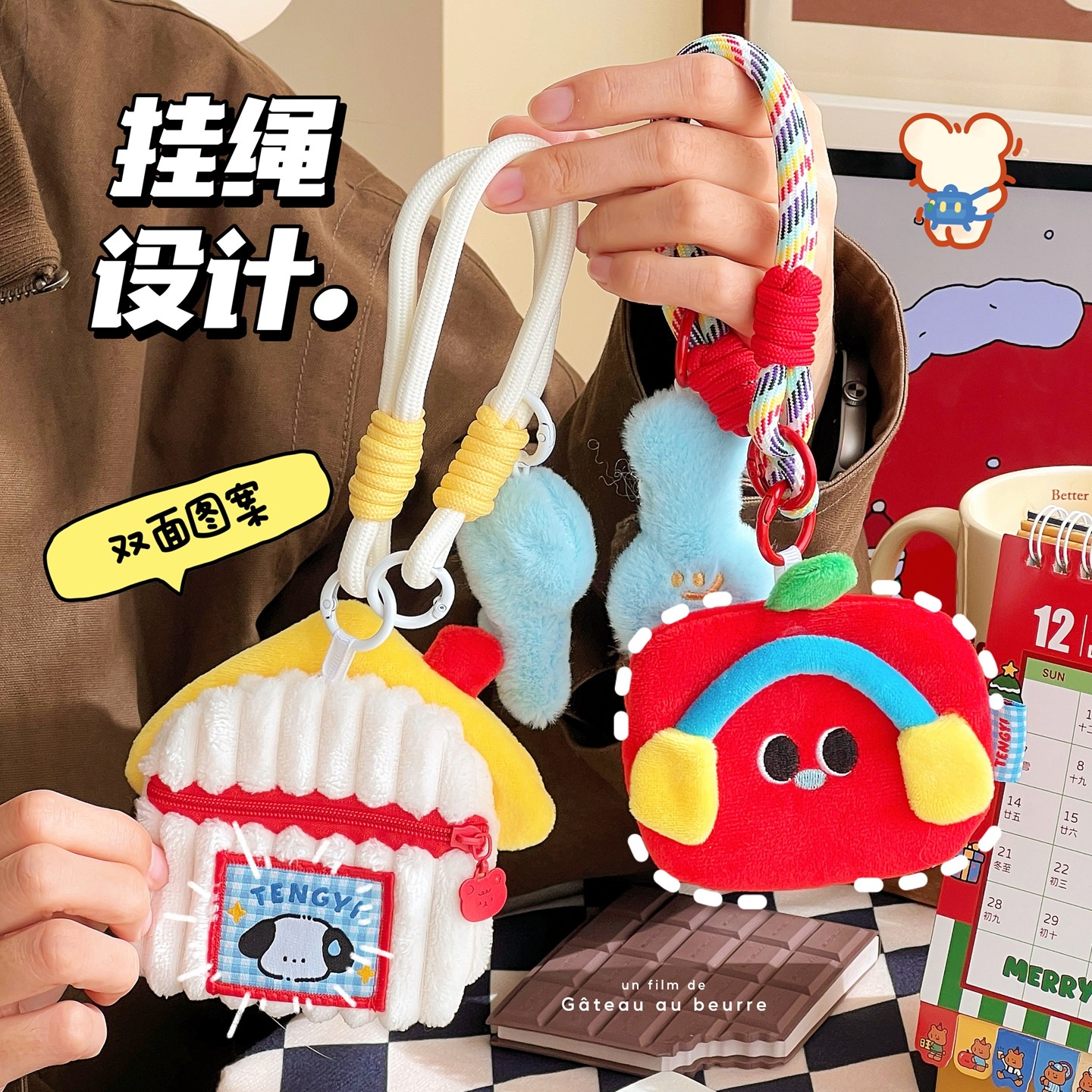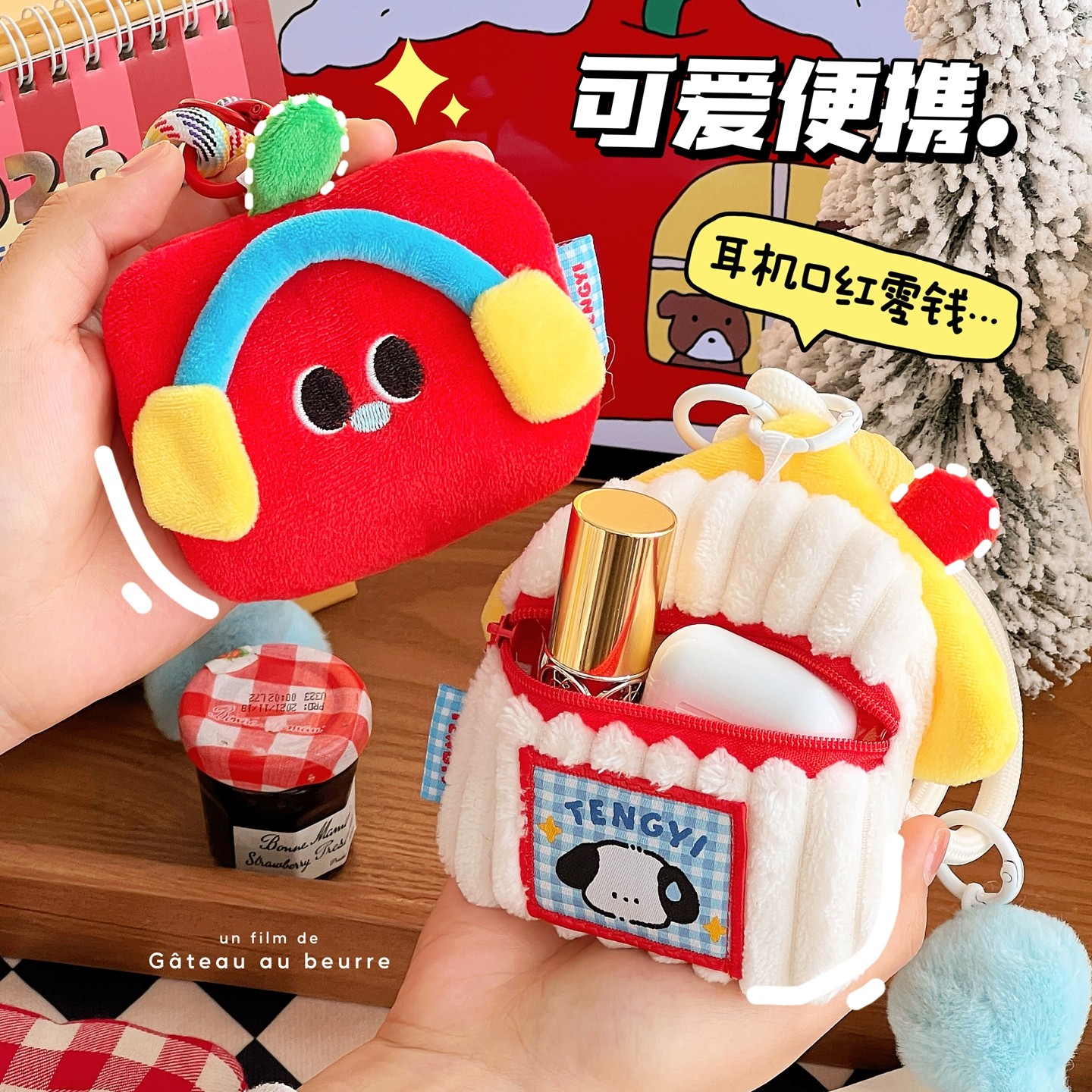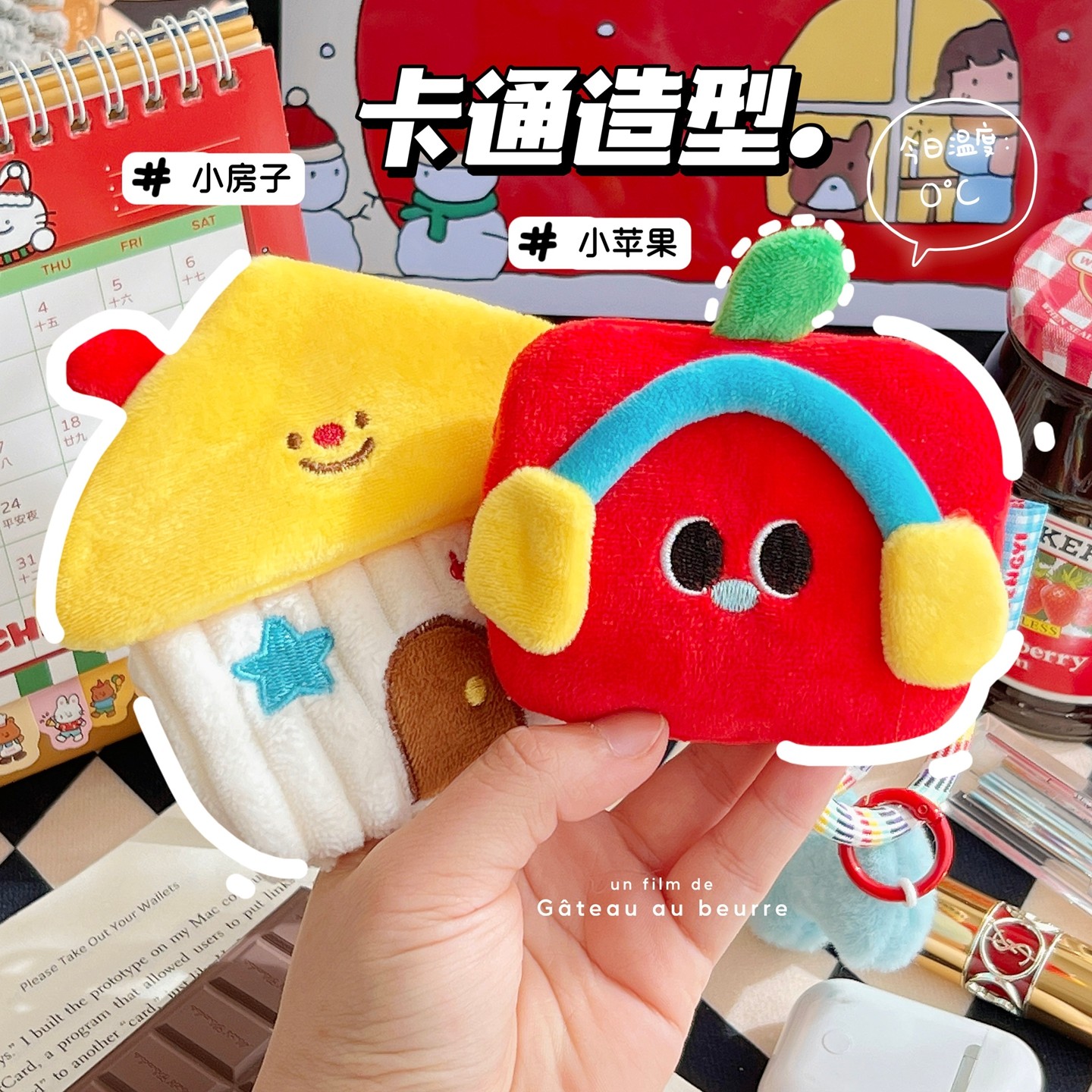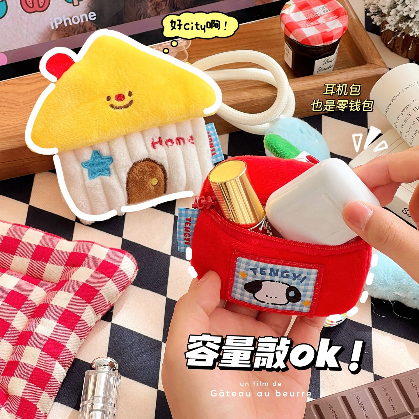 可爱苹果小房子蓝牙耳机收纳包保护套女便携挂饰挂件零钱包耳机包