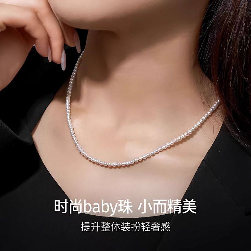 圣诞梵宝诸暨淡水珍珠项链女18K金正圆baby小米珠锁骨链礼物珠宝