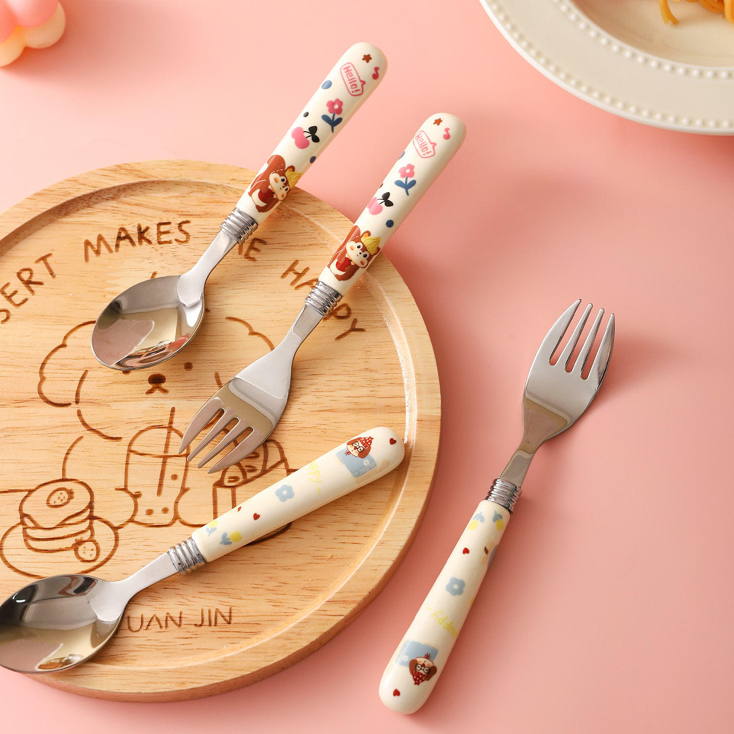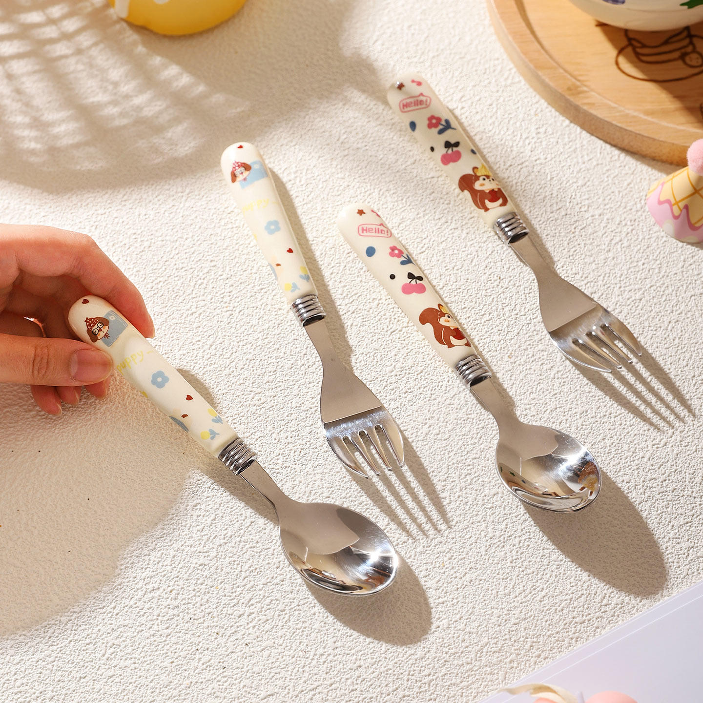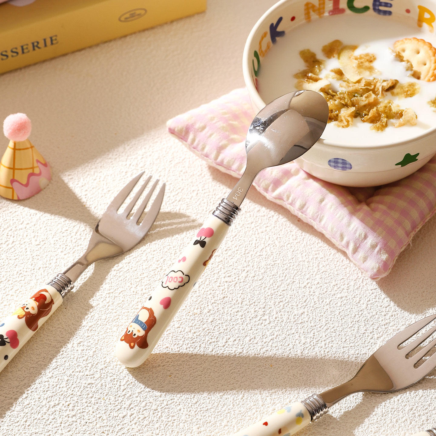 舍里可爱304不锈钢勺子儿童吃饭勺家用创意叉子汤匙调羹叉勺套装