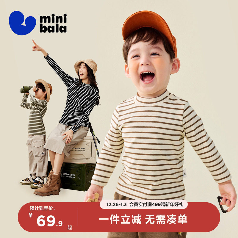 迷你巴拉巴拉男女童亲子长袖T恤2025秋冬季儿童半高领百搭打底衫