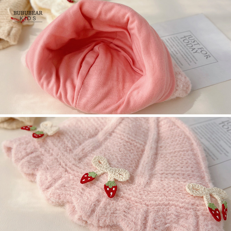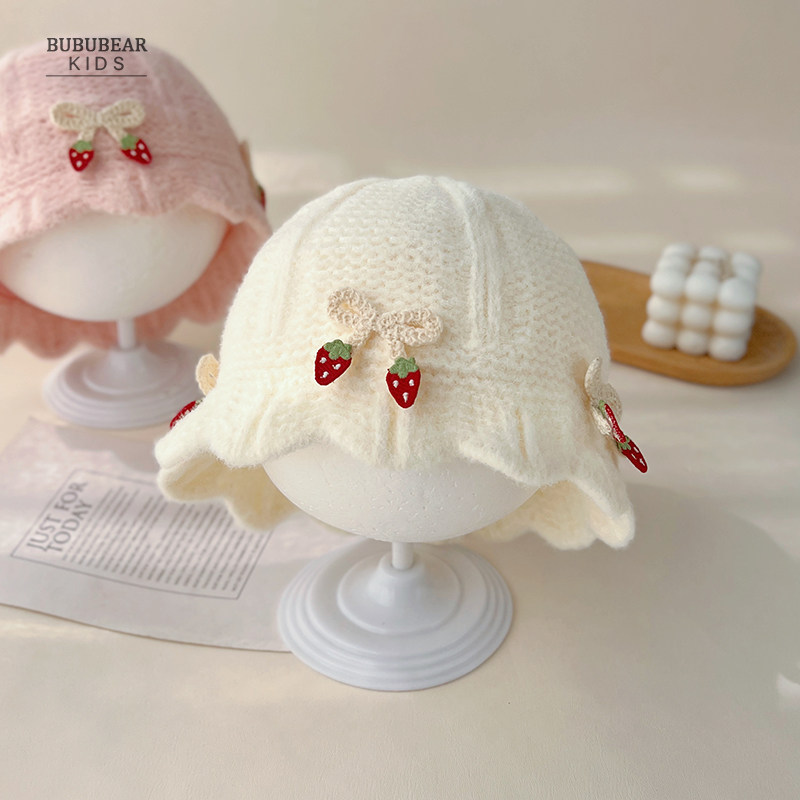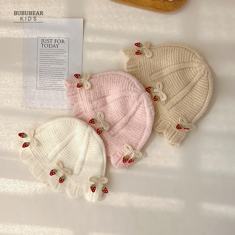 婴儿帽子秋冬韩版洋气公主毛线帽女宝宝冬季保暖针织帽婴幼儿盆帽