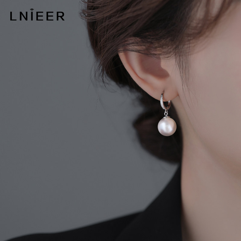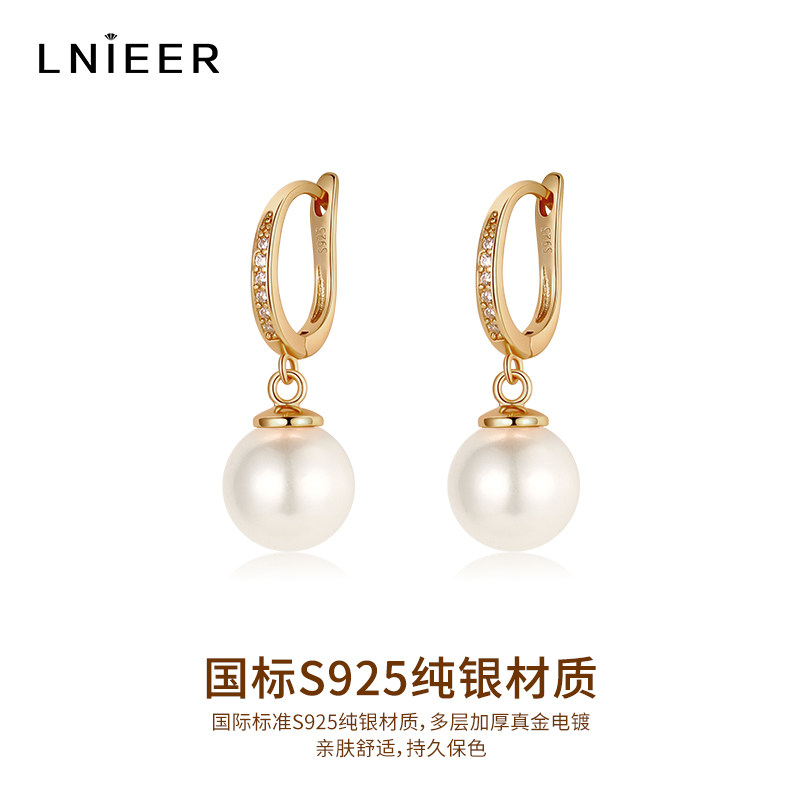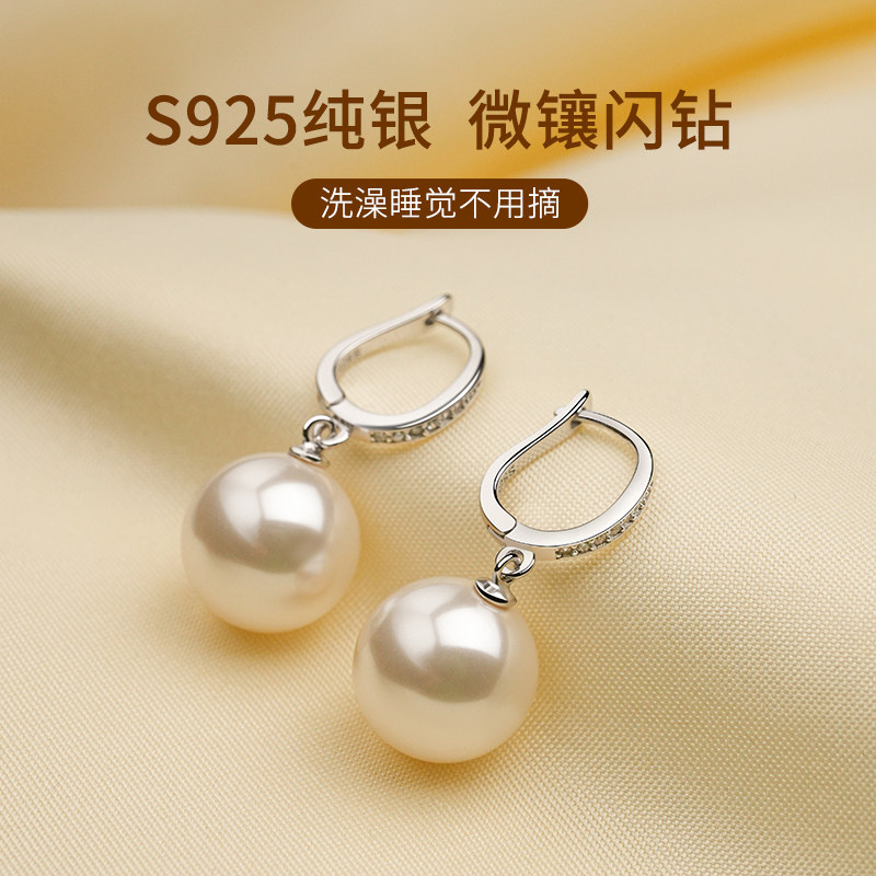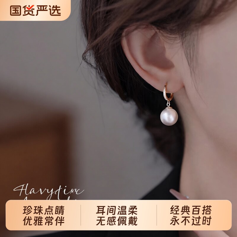 S925纯银正圆仿珍珠耳环女轻奢高级耳钉2025爆款耳扣气质耳坠耳饰