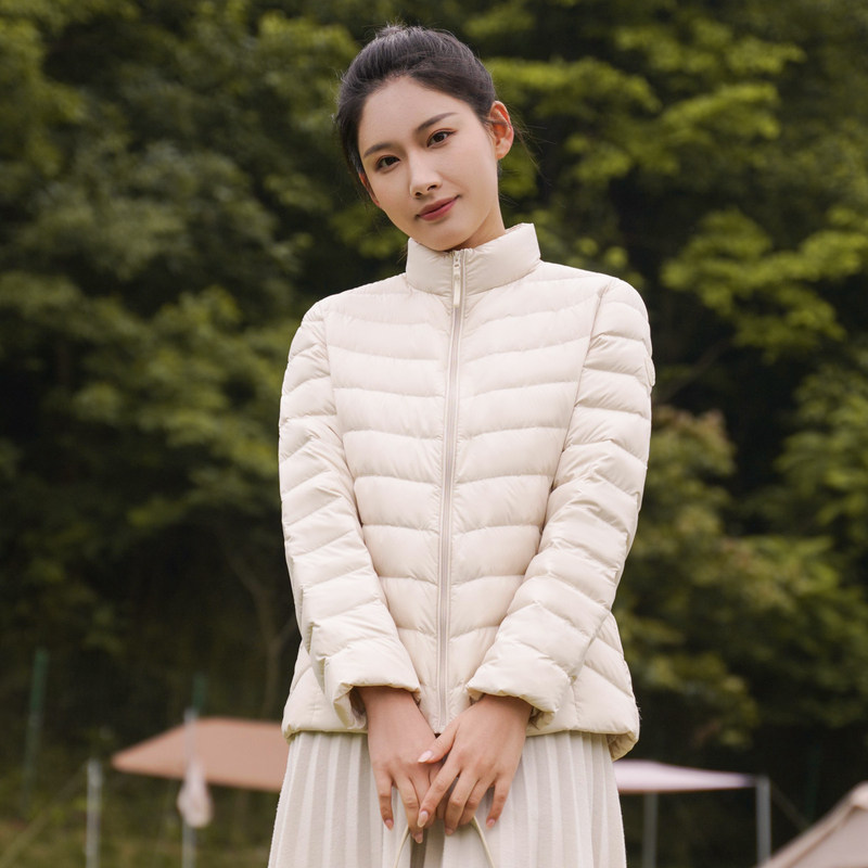 鸭鸭轻薄羽绒服女2025年秋冬反季短款立领修身舒适上衣内胆外套J