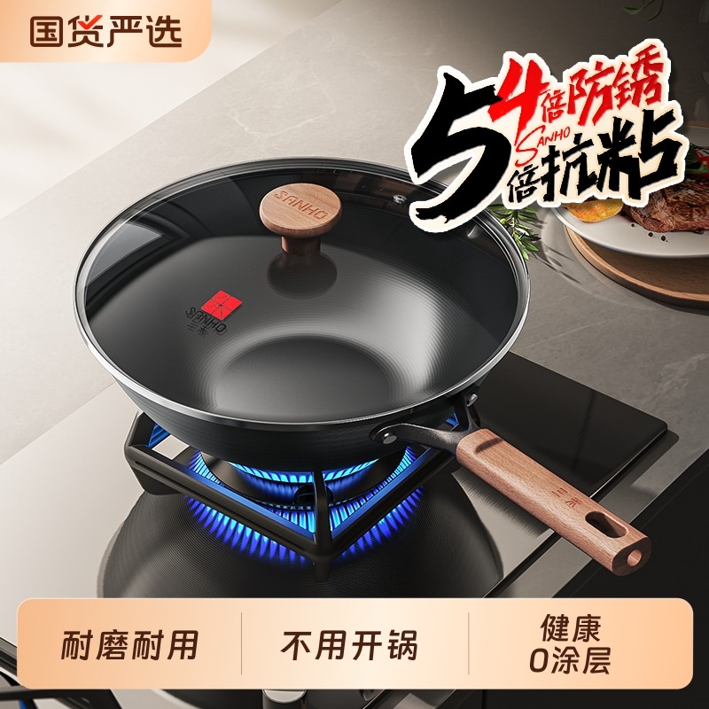 三禾0涂层健康纯铁新铁锅无需开锅无需养锅家用无涂层炒锅铁锅