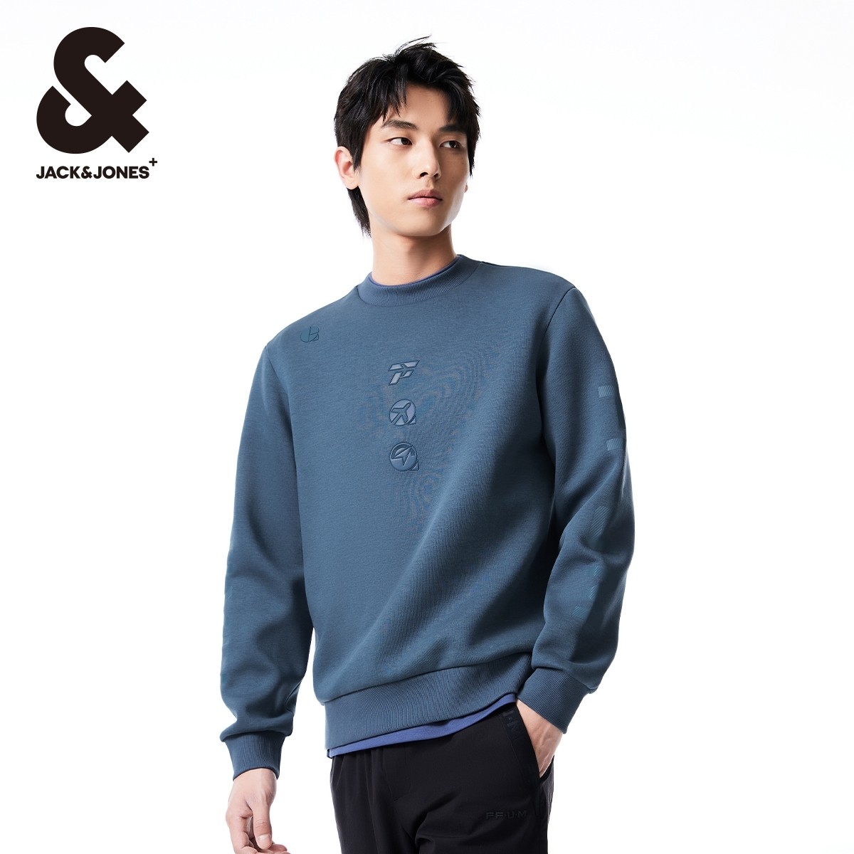 杰克琼斯24秋季新款直筒休闲纯色基础抗菌衣服罗纹圆领卫衣男装