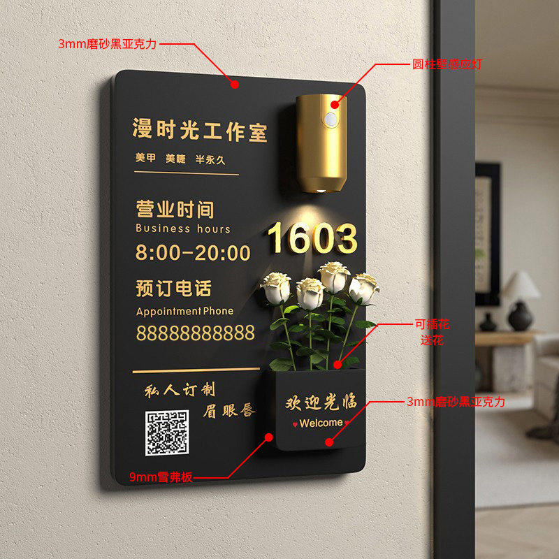 营业时间告示牌工作室logo门牌招牌定制插花感应灯美甲门口头广告提示牌轻奢展示挂牌美容店欢迎光临工作时间