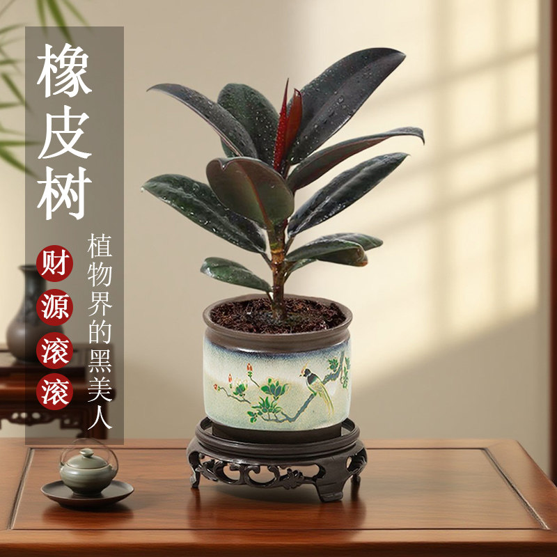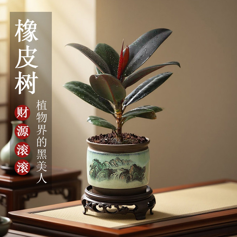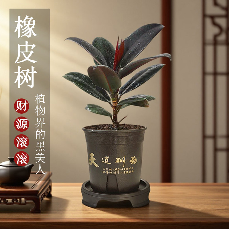 黑金刚橡皮树盆栽净化空气室内绿植办公桌盆栽四季常青好养植物