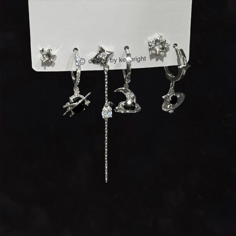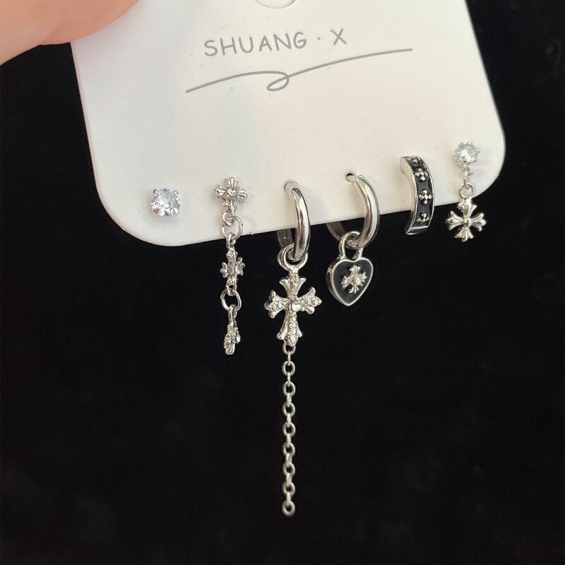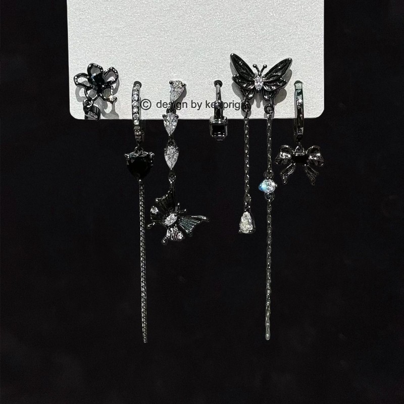 超酷grl!爱心锆石六件套耳钉甜酷耳圈小众设计件套耳扣耳饰蝴蝶