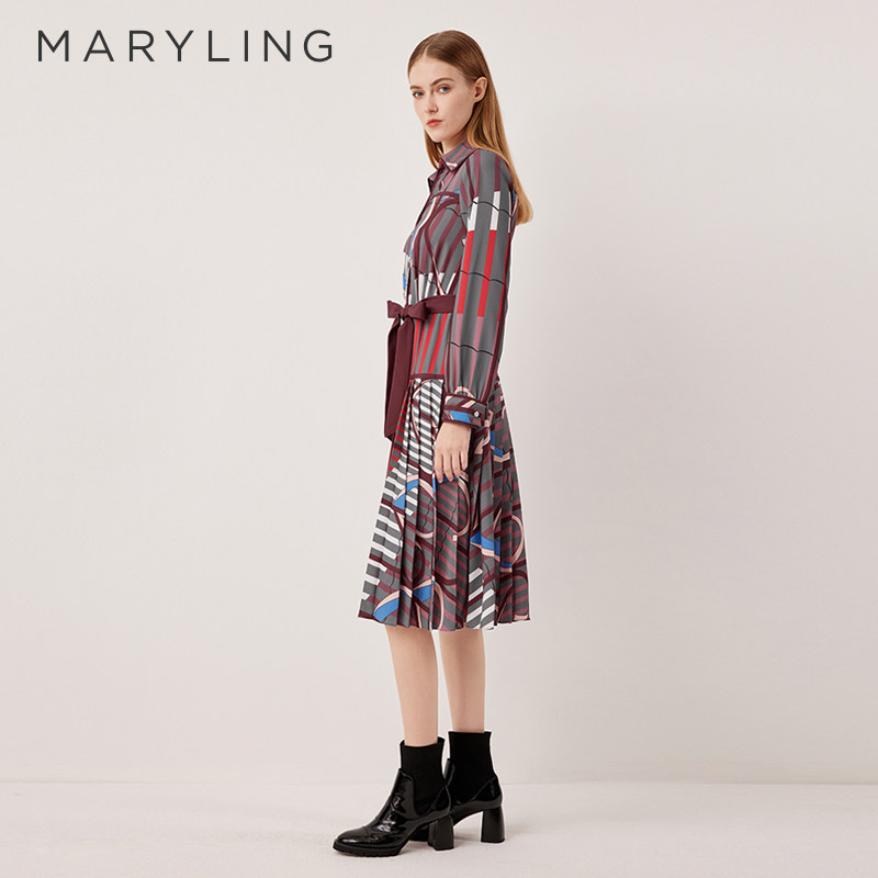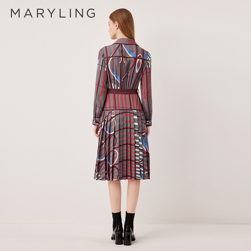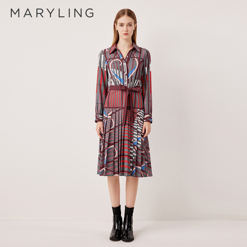 MARYLING玛俪琳2025秋季新品艺术感衬衫式长款连衣裙A1FGW61410