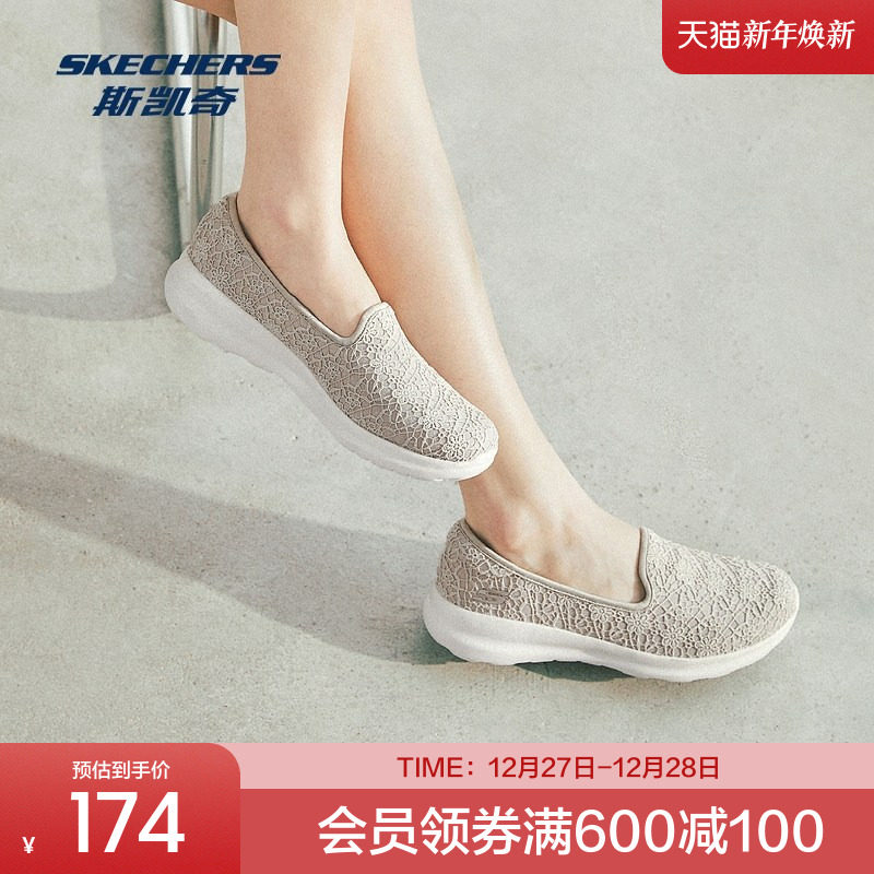 Skechers斯凯奇2025秋冬女鞋轻质通勤鞋蕾丝刺绣一脚蹬休闲健步鞋