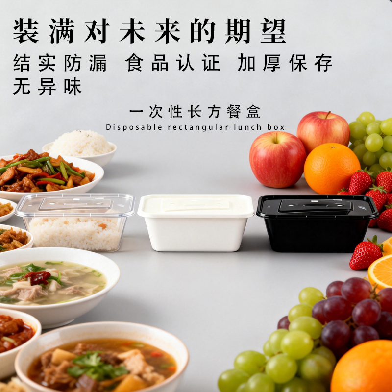 一次性饭碗餐盒打包盒食品级加厚商用外卖餐具家用饭盒塑料盒带盖