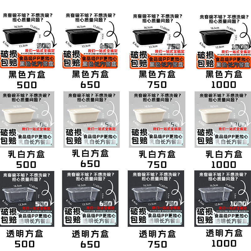 750ml/650方形餐盒一次性打包盒商用长方形快餐塑料带盖外卖饭盒
