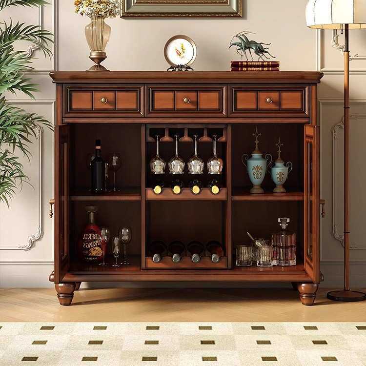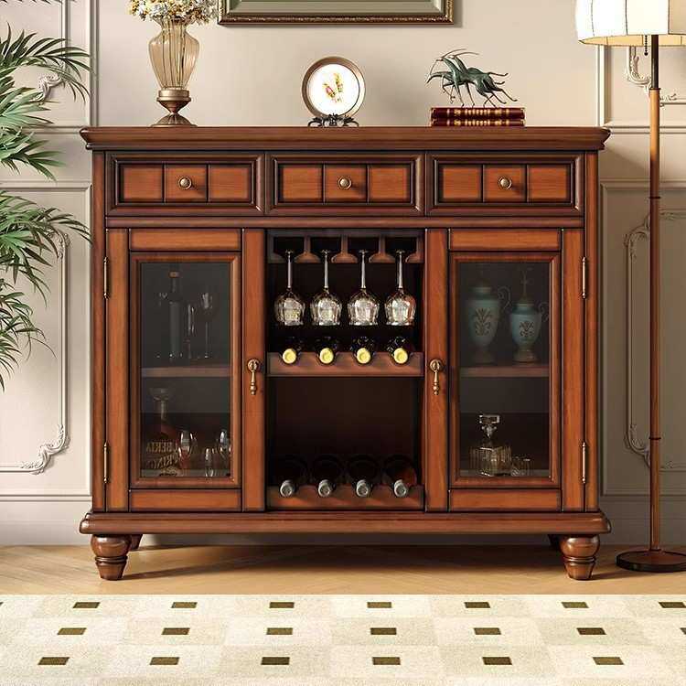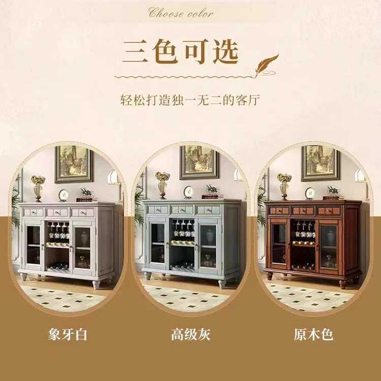 美式实木餐边柜复古茶水柜酒柜欧式轻奢客厅厨房一体靠墙储物柜