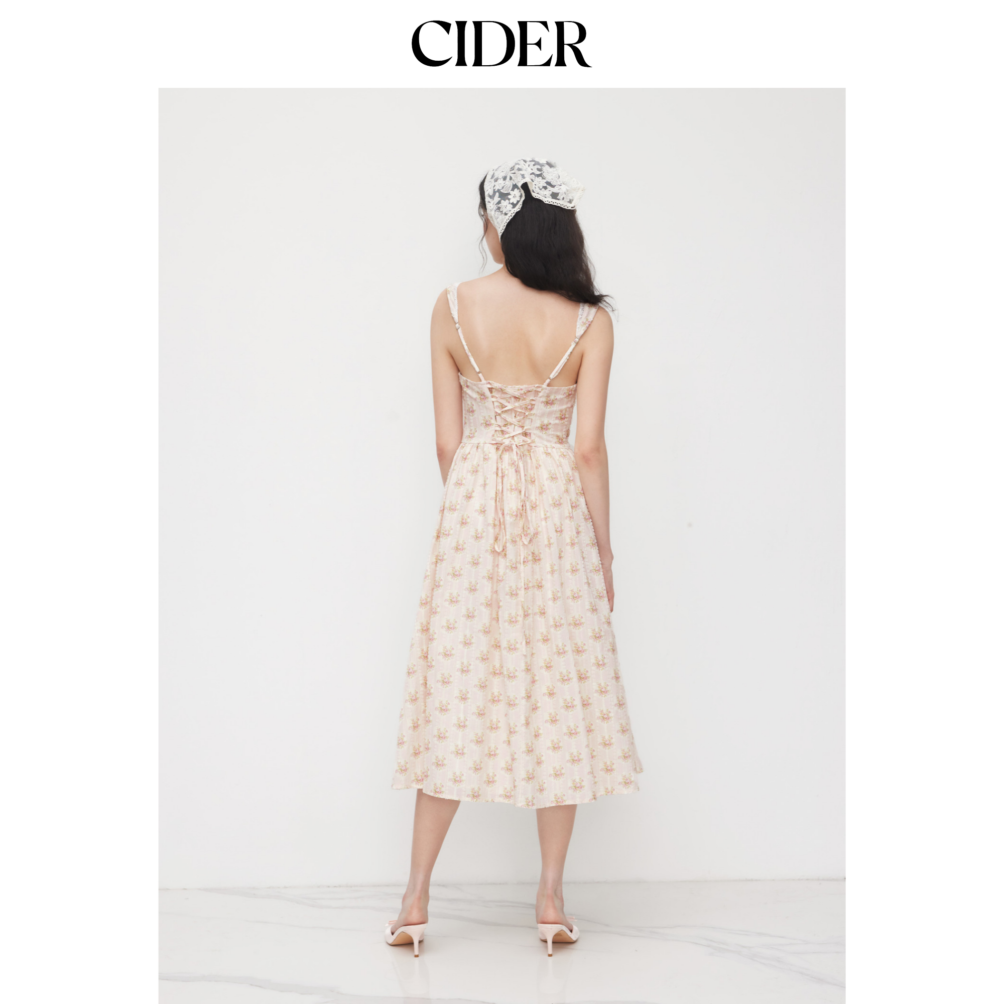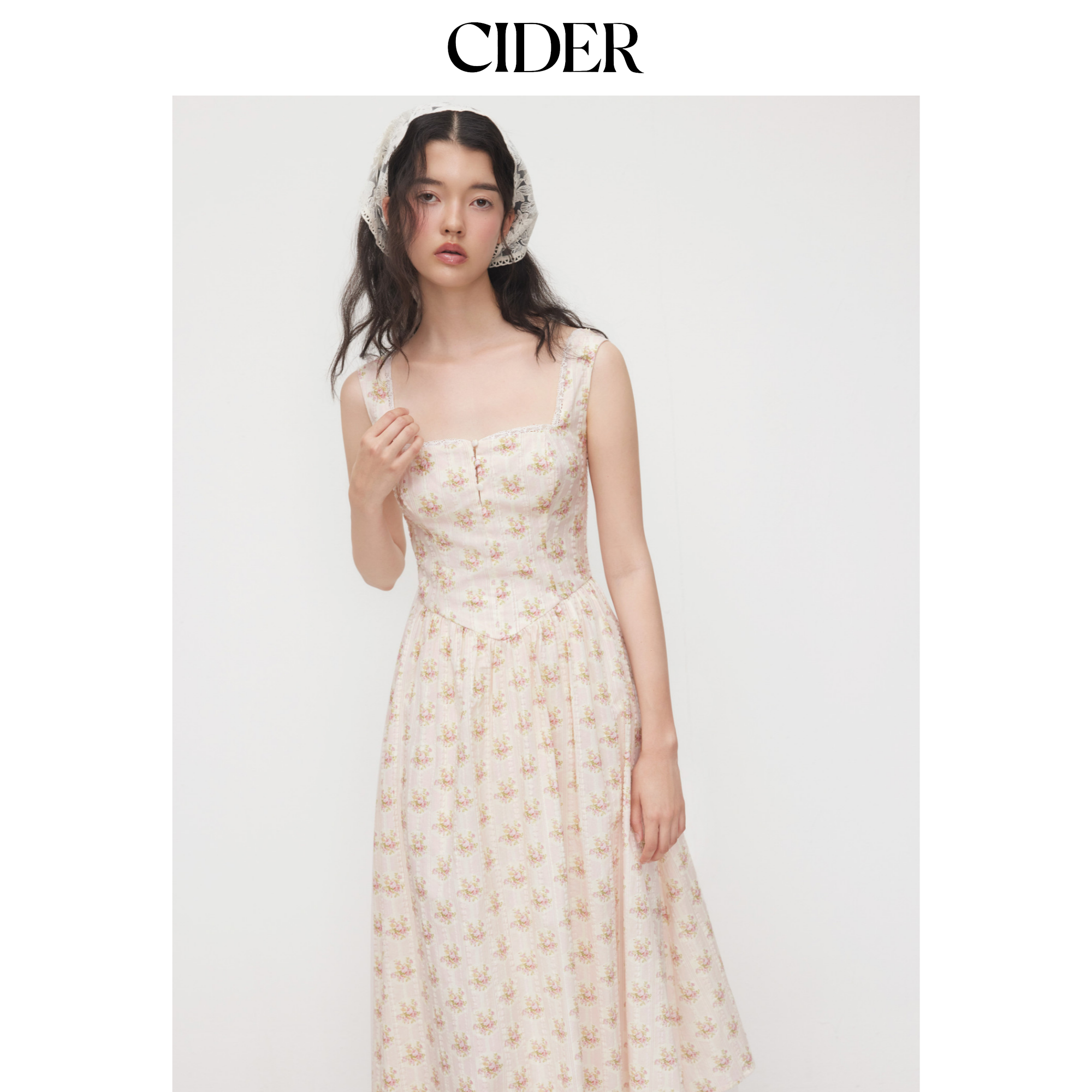 CIDER 法式方领碎花甜美吊带裙长款吊带连衣裙114502107