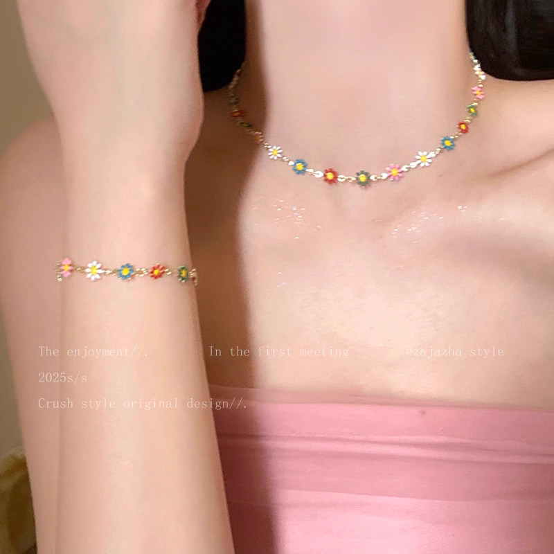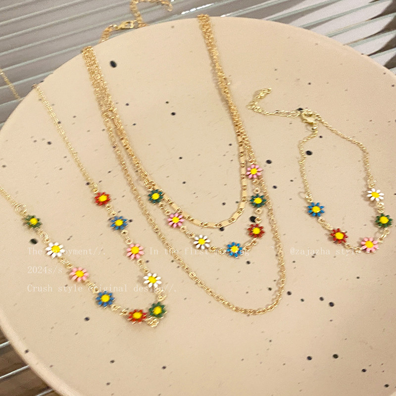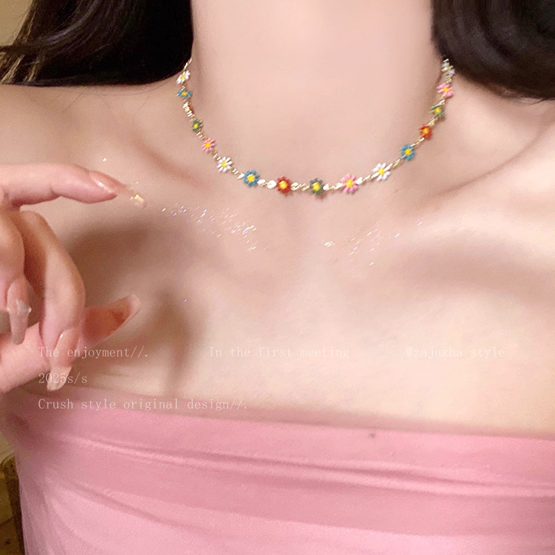 夏日多巴胺彩色雏菊项链女ins风小众设计锁骨链清新气质百搭颈链
