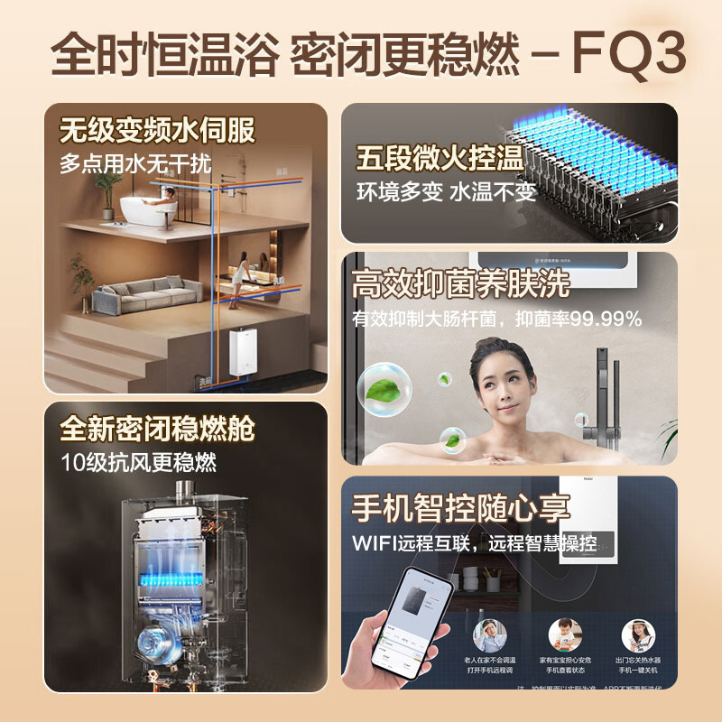 海尔燃气热水器天然气家用速热恒温13升16L水伺服KE5密闭稳燃KA03