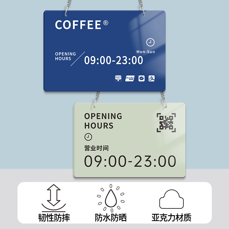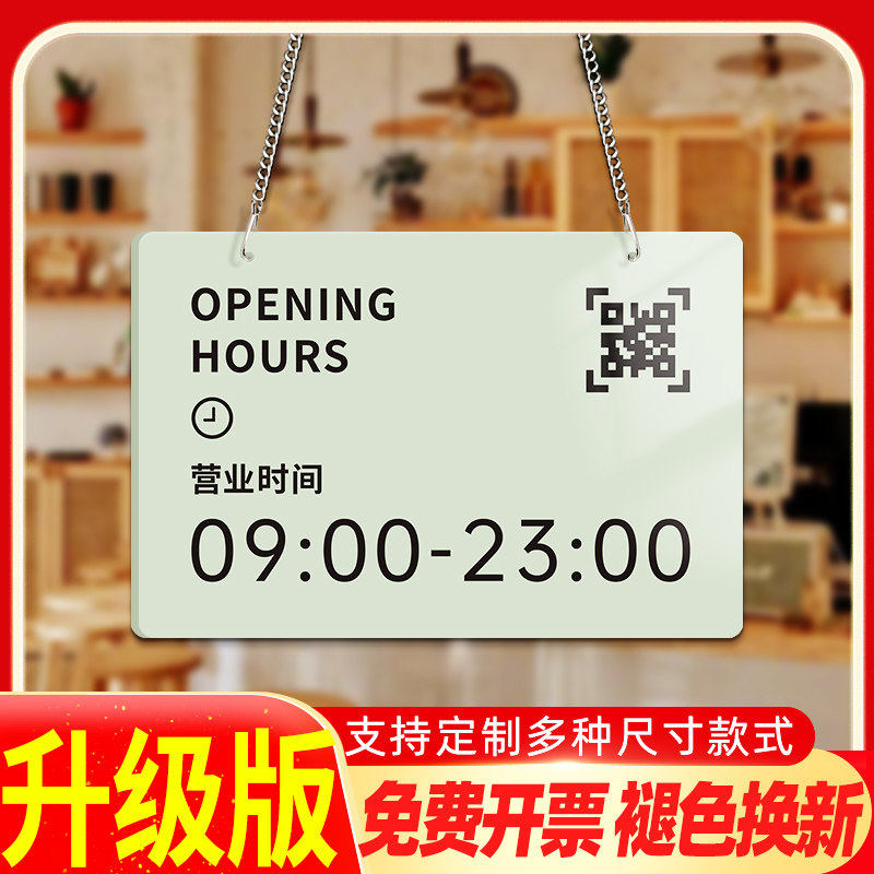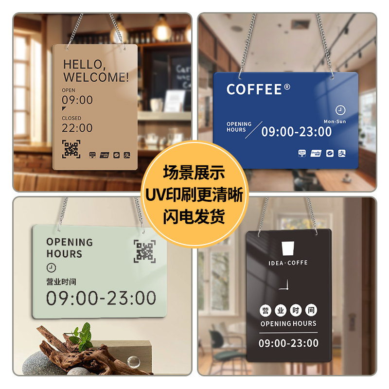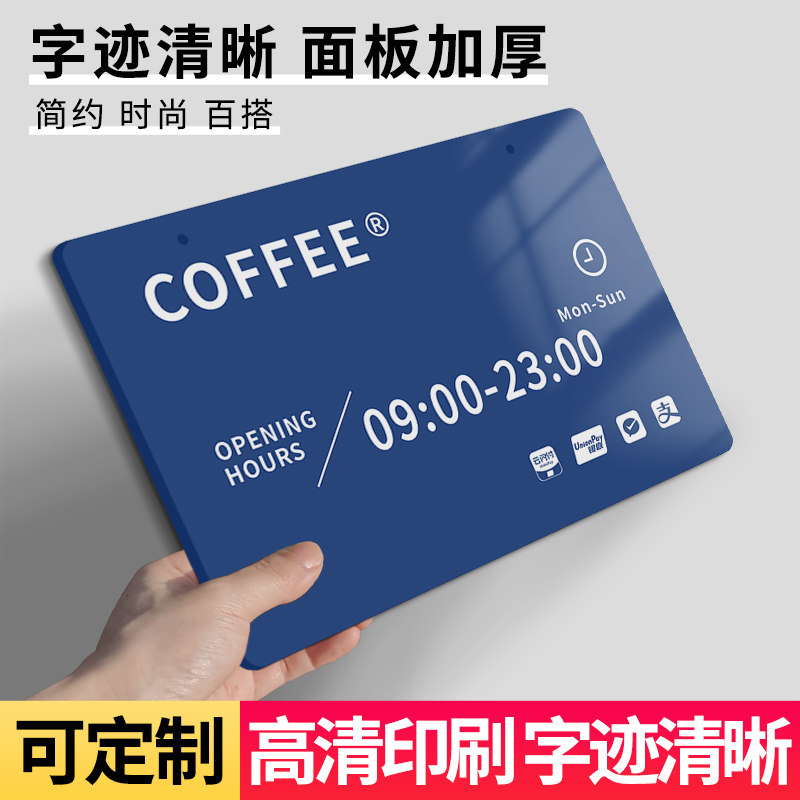 营业中挂牌营业时间告示牌贴纸玻璃店铺门牌招牌简约提示牌上班下班工作休息时间展示牌定做广告牌亚克力定制