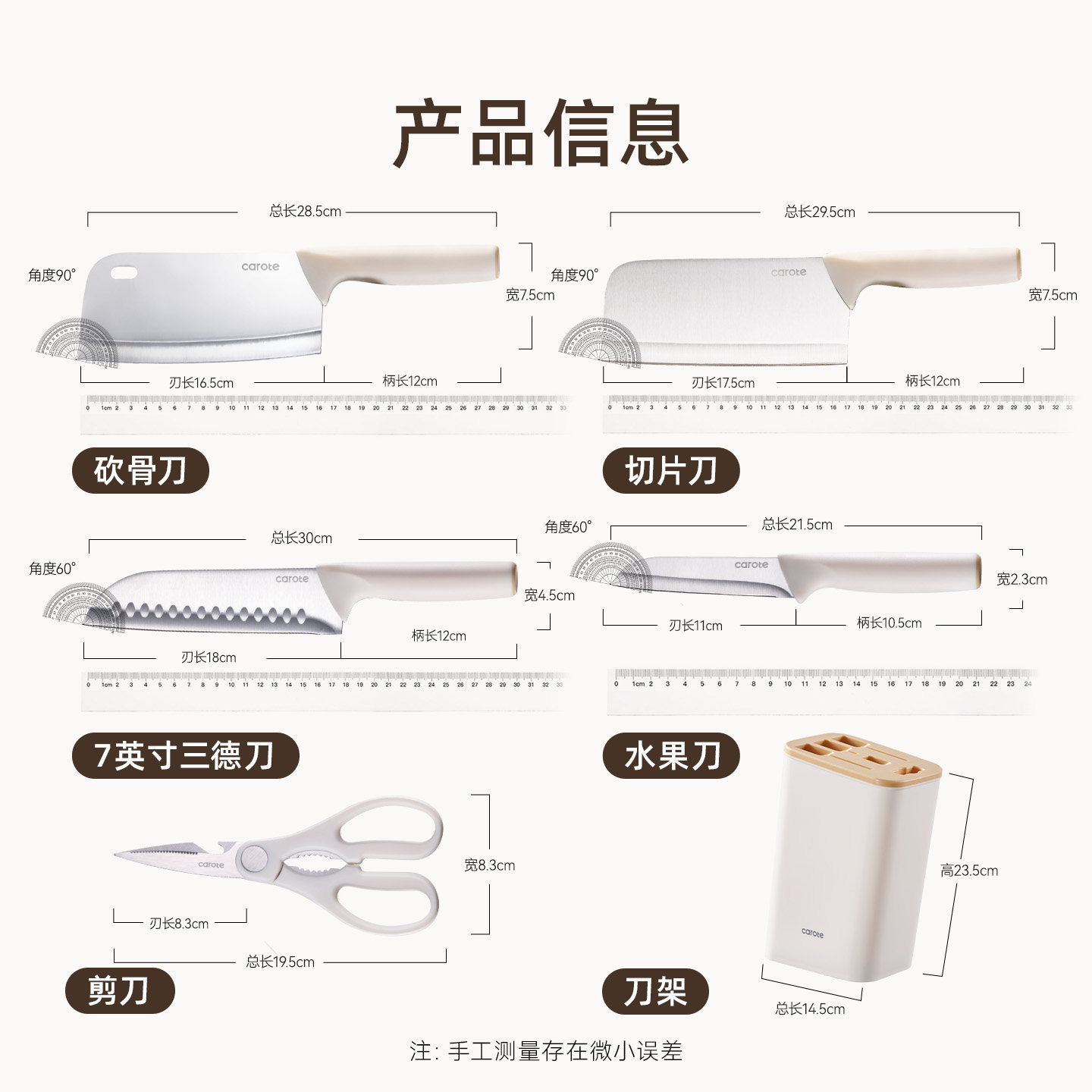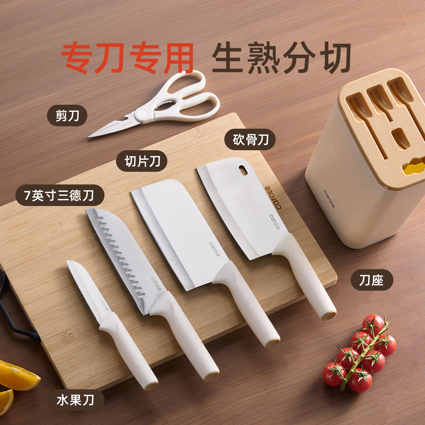 卡罗特刀具厨房套装组合家用菜刀不锈钢厨刀宝宝辅食全套厨具套刀