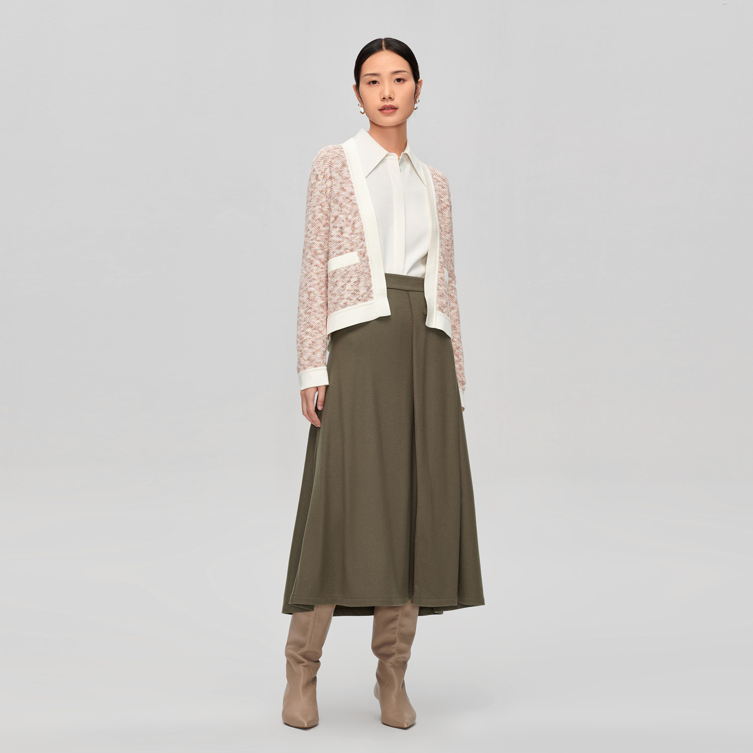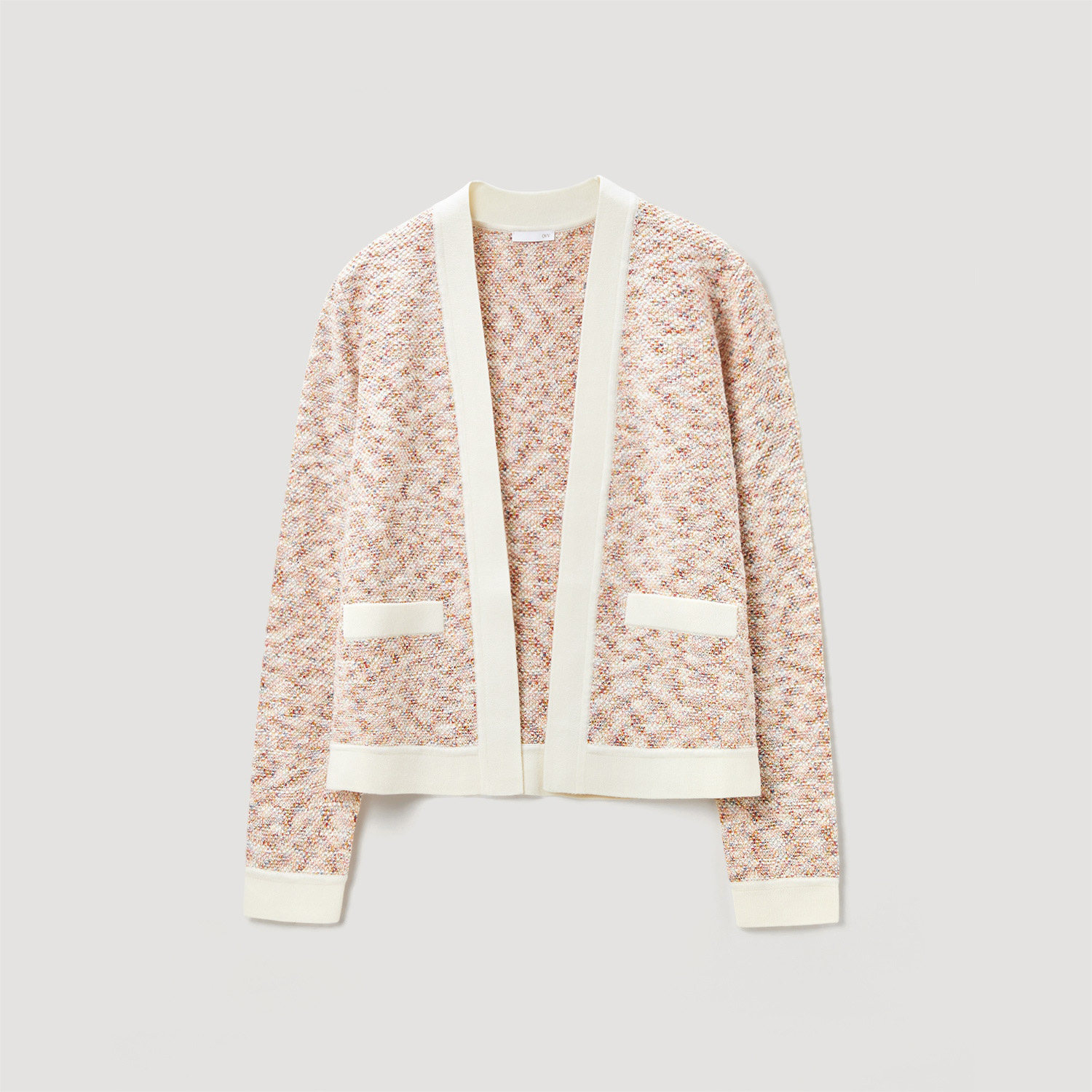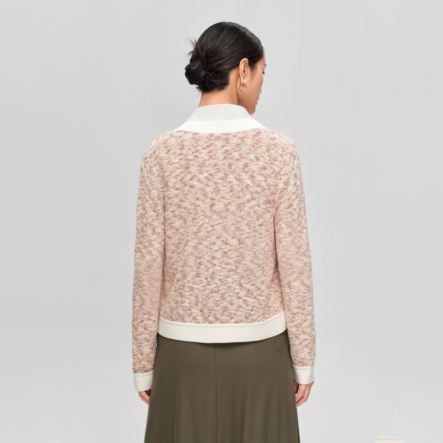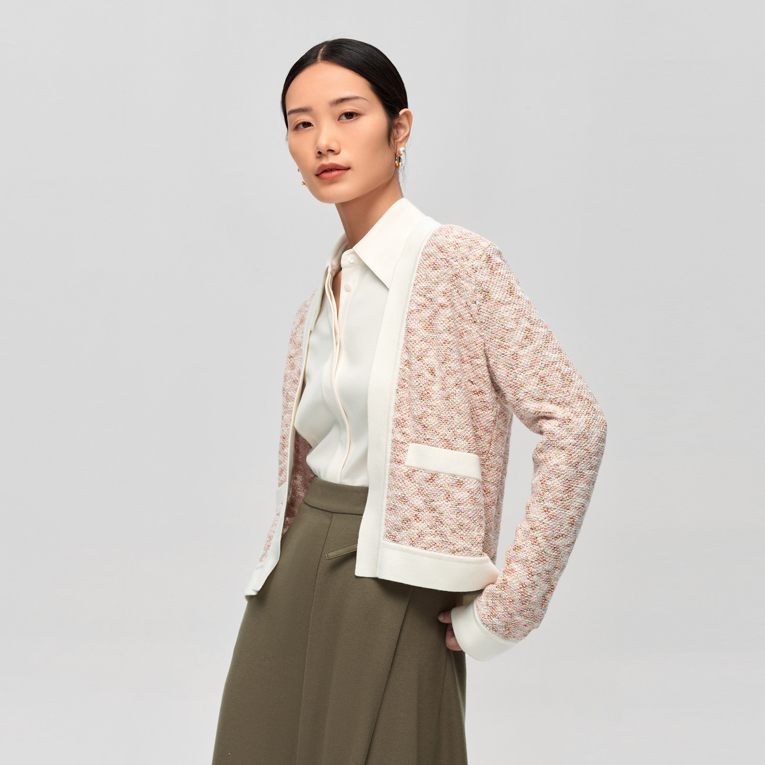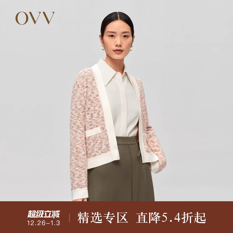 OVVOutlet秋冬热卖女装棉质花纱肌理感撞色休闲针织开襟外套
