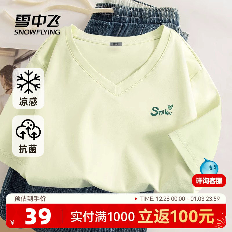 【V领凉感抗菌】雪中飞短袖t恤女2026新款夏季上衣女士宽松半袖PC