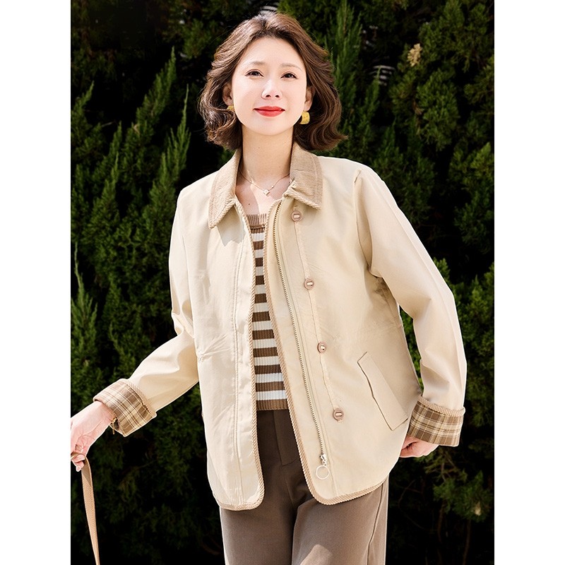 妈妈休闲短款外套中年女装春秋装外衣中老年新款洋气薄款上衣年轻