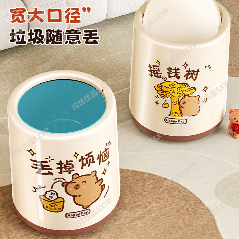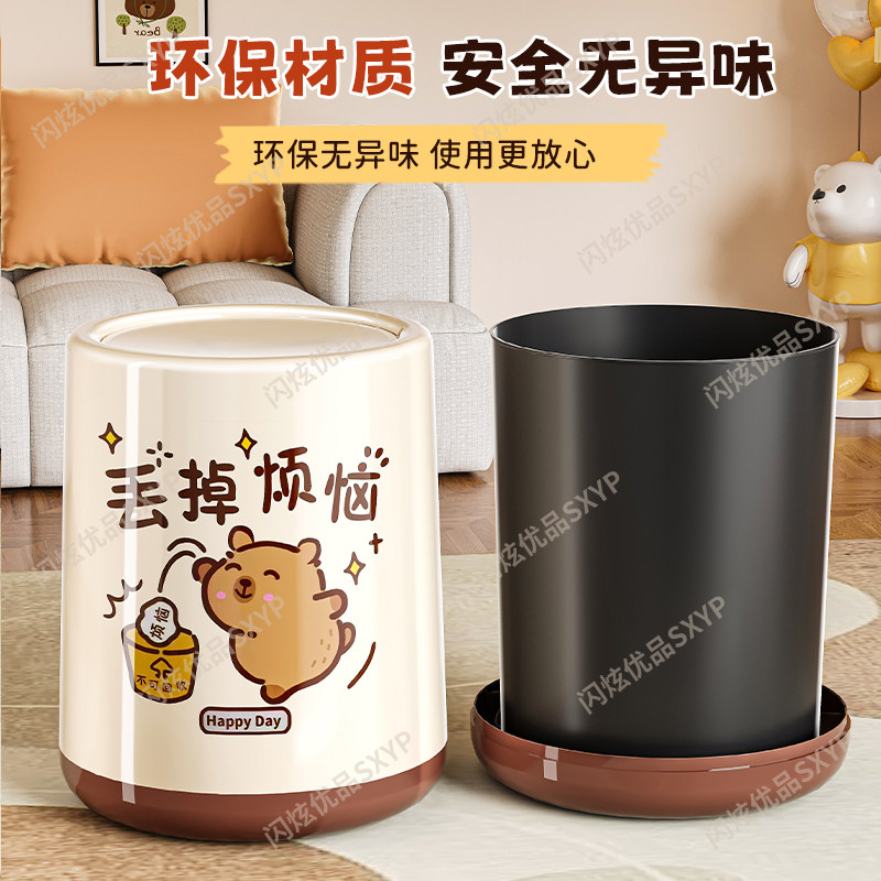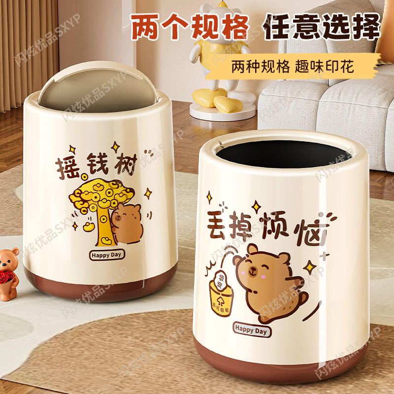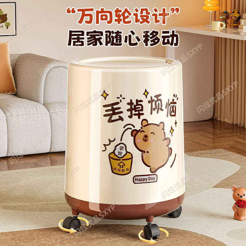 卡皮垃圾桶家用新款高颜值客厅卧室带盖卡通可爱卫生桶带轮可移动