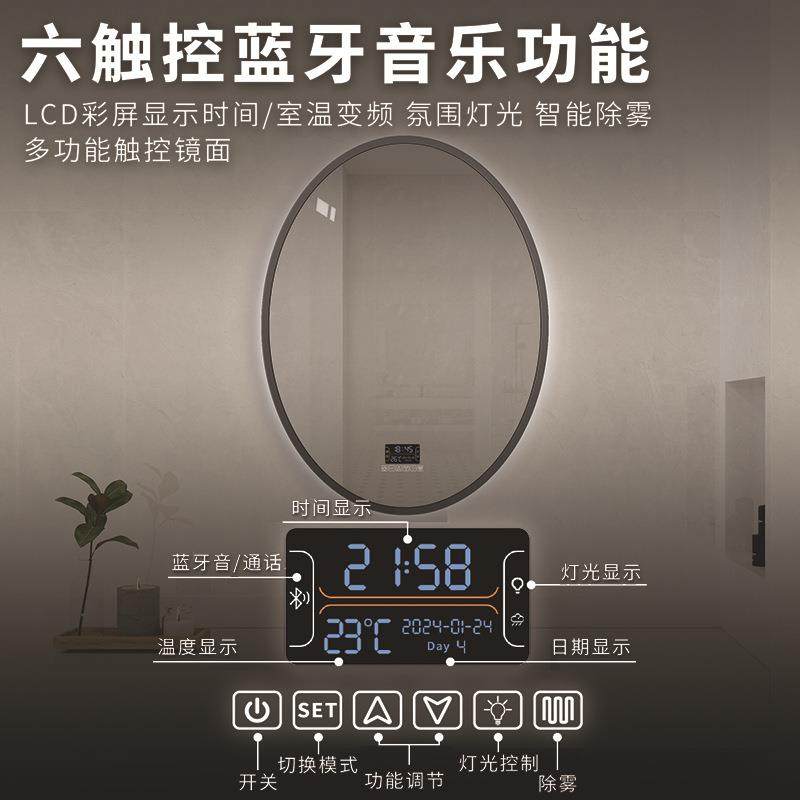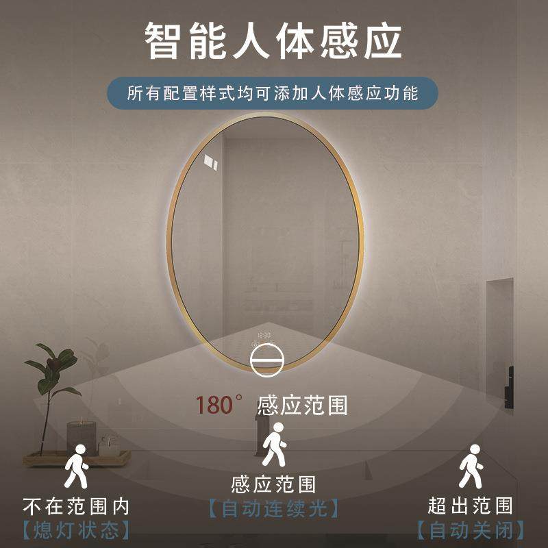 铝框椭圆形浴室镜子触摸感应除雾LED梳妆镜卫生间挂墙高清智能镜