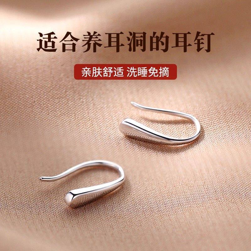 999纯银耳钉女养耳洞耳骨钉小众高级感锆石耳蜗钉水钻耳环银耳饰