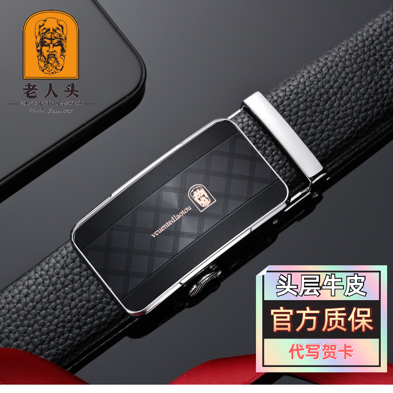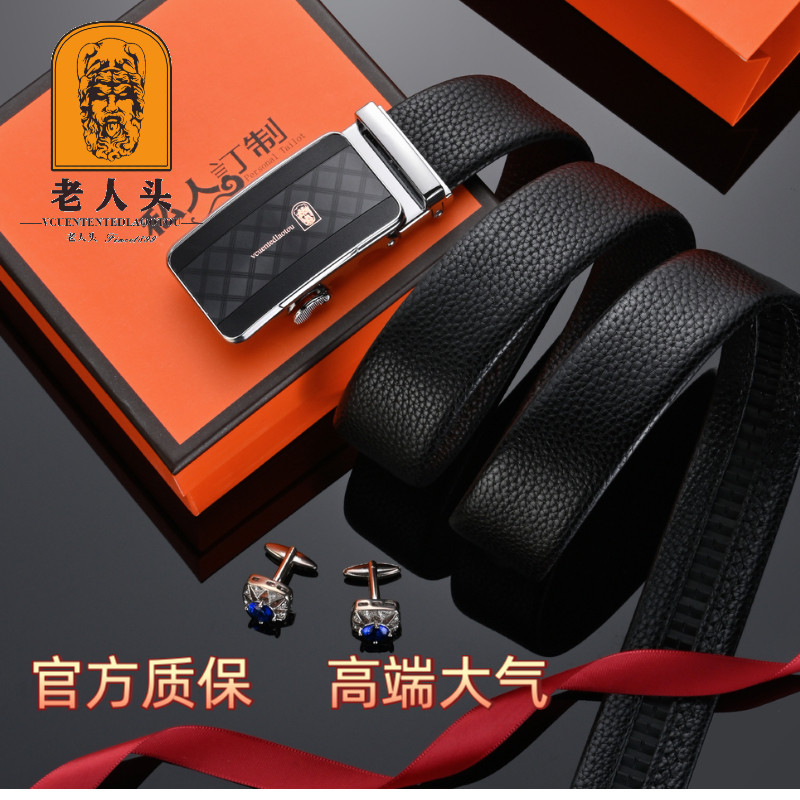 送礼盒老人头男士真皮带中欧式自动扣纯牛皮高档商务休闲腰带礼盒
