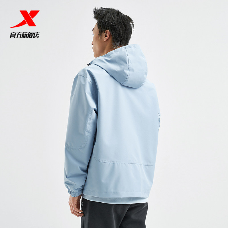 特步运动风衣男款2025秋季新款防风连帽外套休闲夹克976329150287
