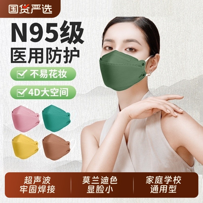 N95级医用防护口罩柳叶女高颜值秋冬款四层灭菌耳带防雾鱼嘴立体
