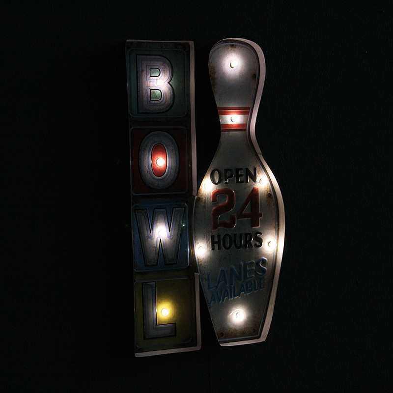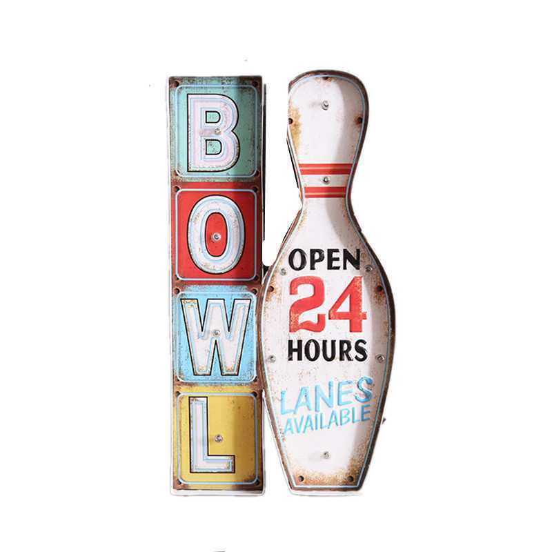 跨境电商新款货源保龄球墙面墙饰LED灯铁壁饰家居咖啡酒吧铁皮画