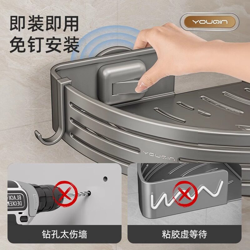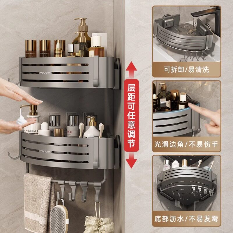 枪灰卫生间置物架浴室三角架子免打孔壁挂厕所洗手间洗漱台收纳架