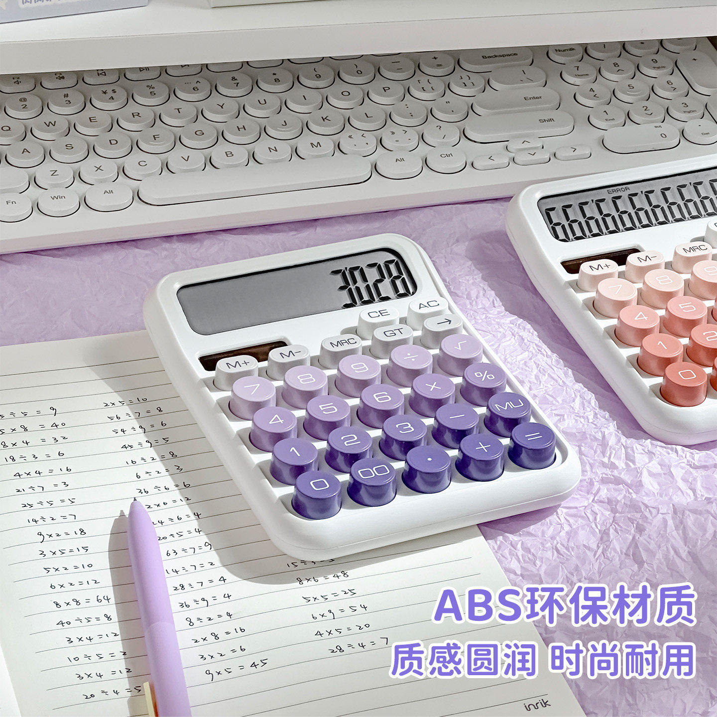三年二班 太阳能渐变计算器高颜值女神款会计办公室用2026新款多功能计算机可爱网红款儿童学生多功能商用