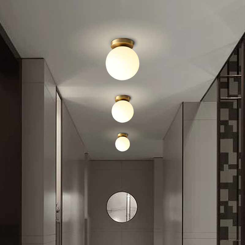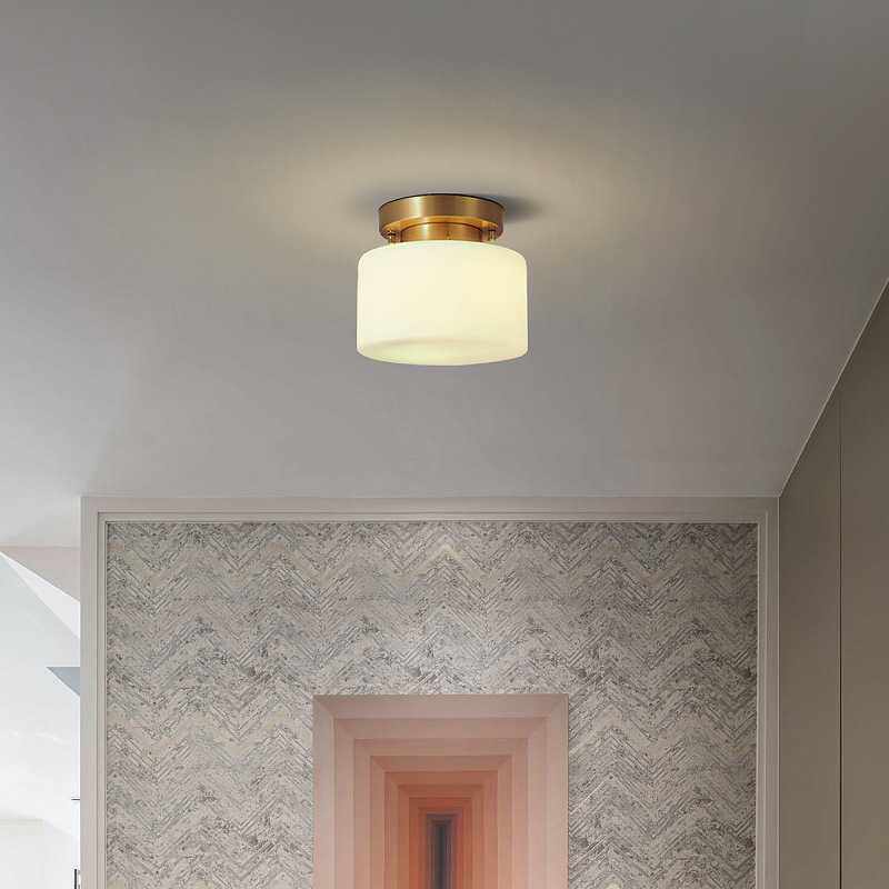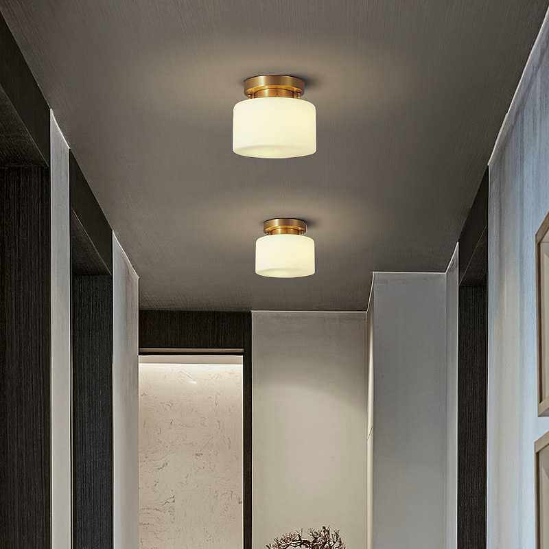 新中式吸顶灯过道阳台灯玄关走廊云石灯简约现代灯饰圆形全铜灯具