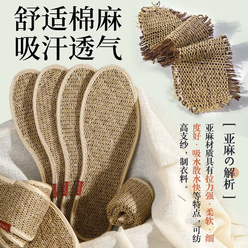手工棉麻生姜除臭鞋垫子强效吸汗抑菌男女款透气防臭加厚粗麻鞋垫