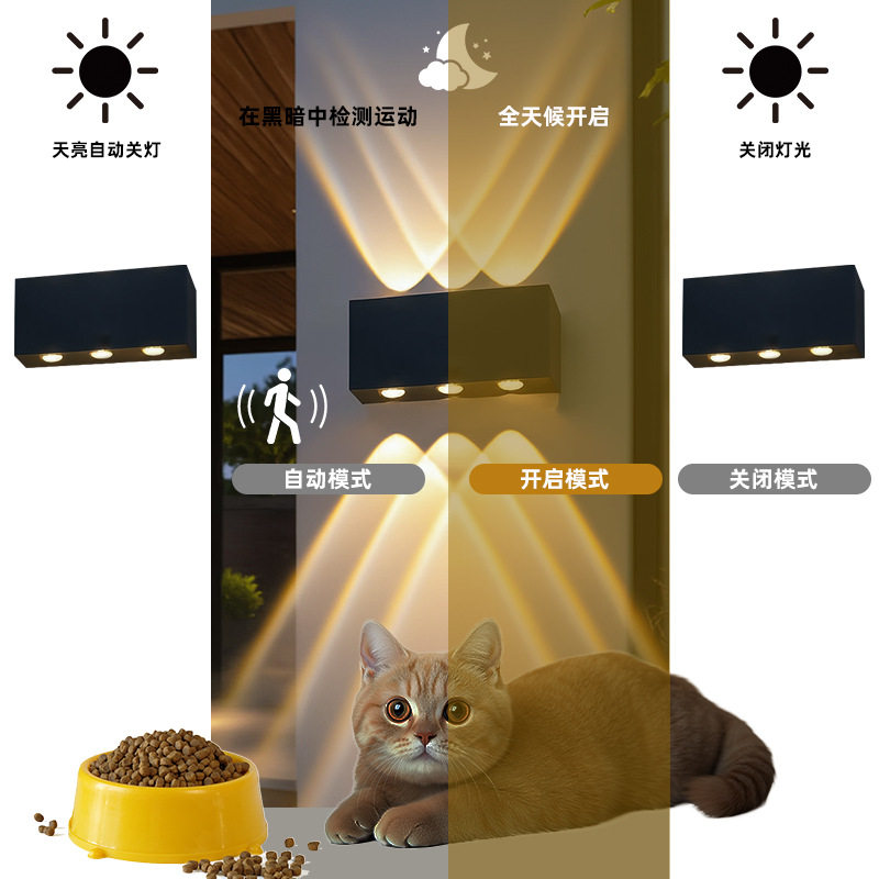 跨境感应壁灯创意上下发光户外走廊过道卧室门口LED铝材墙壁灯