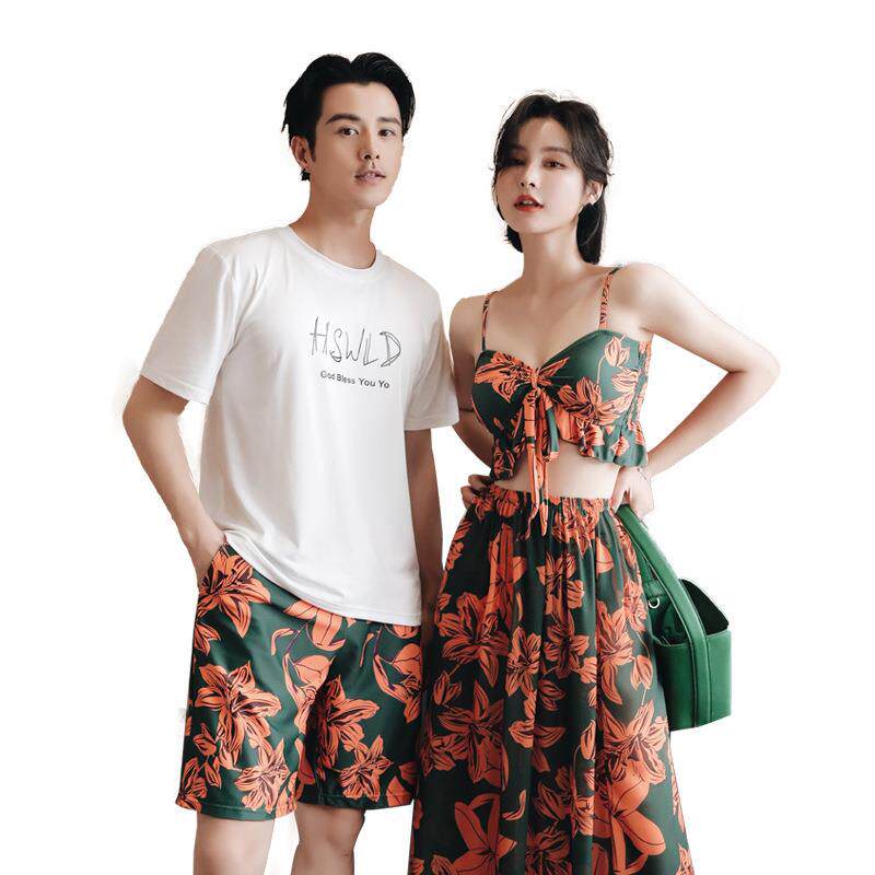 2026新款情侣泳衣男沙滩裤女三件套裙式分体泳衣比基尼海边度假装