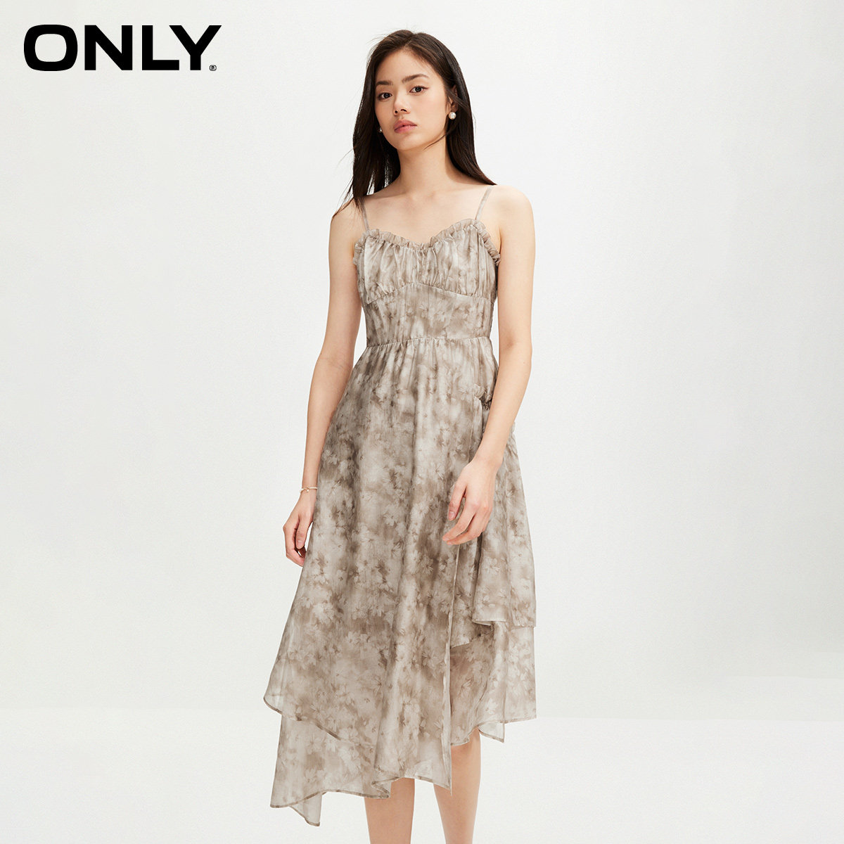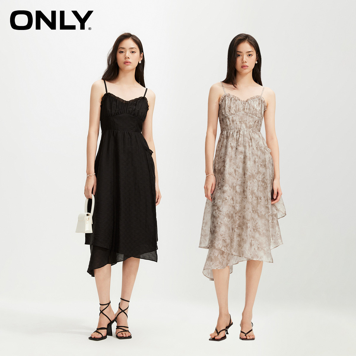 【ONLY奥莱】春夏新款时尚简约高腰修身中长款吊带连衣裙女