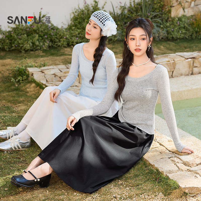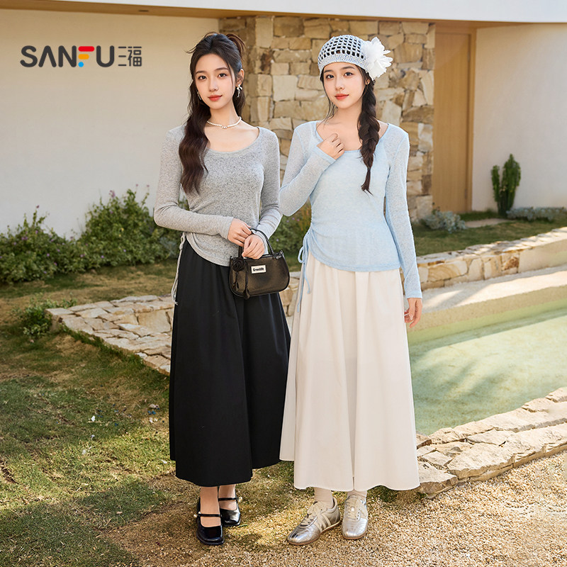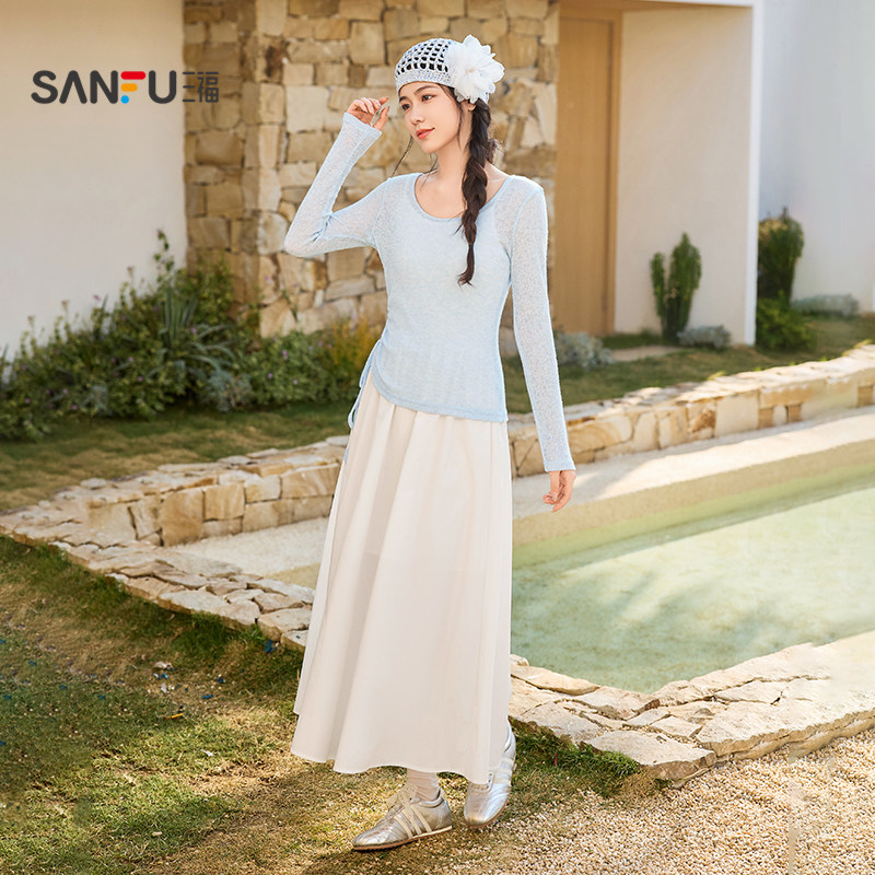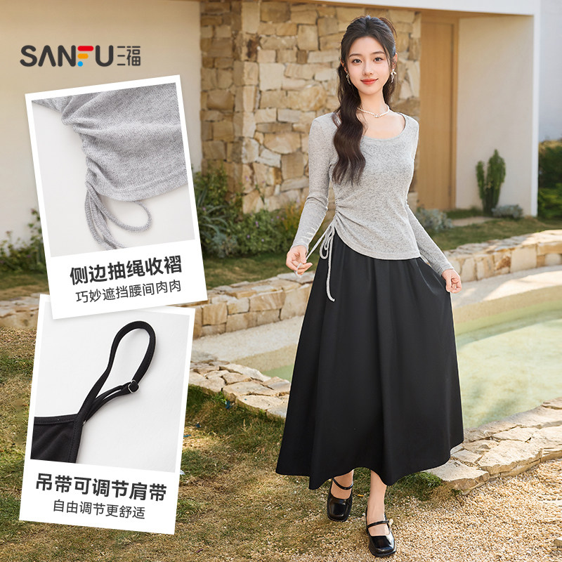 三福连衣裙套装2026新款春季气质罩衫吊带长裙子两件套女装515281