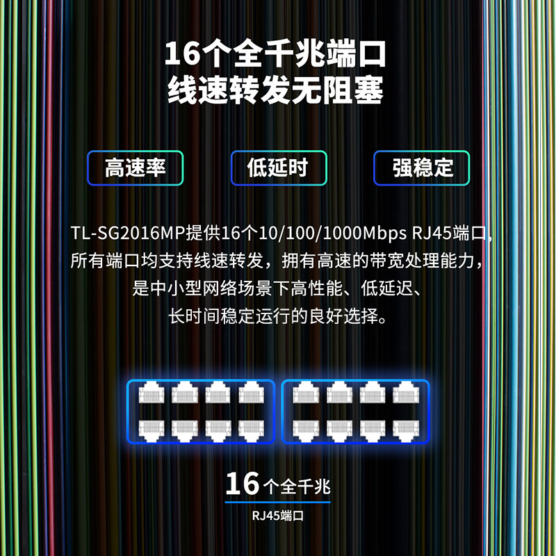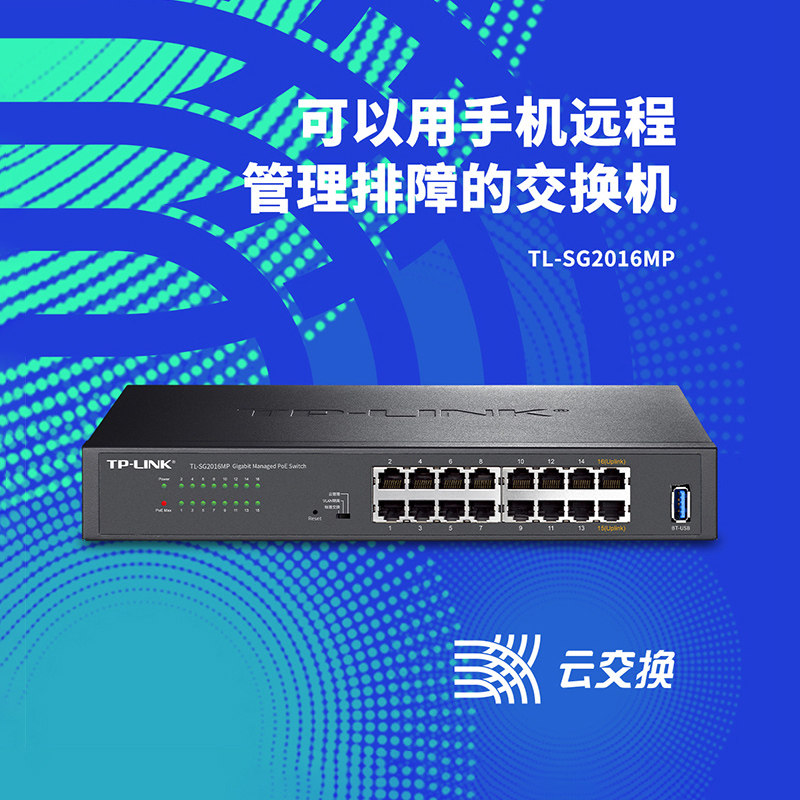 TP-LINK 16口千兆poe交换机 vlan支持云管理 供电网络交换器网线分线监控摄像头AP企业集线器分流器 SG2016MP