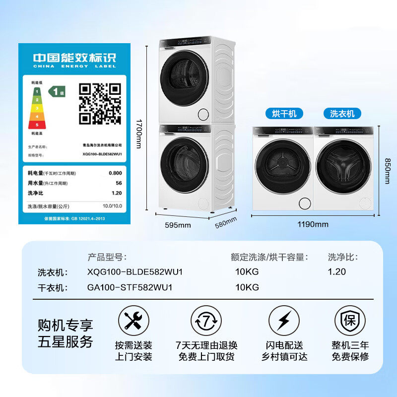 【云溪4.0】海尔洗烘套装77E滚筒洗衣机家用热泵烘干机官方旗舰店