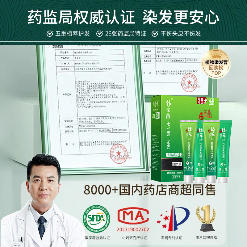 韩金靓染发剂天然黑茶色植物纯自己染发膏男女专用正品官方旗舰店